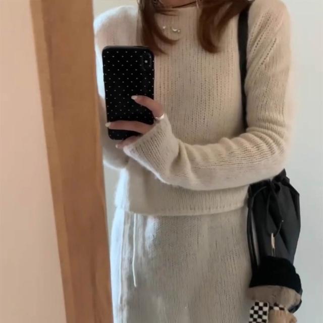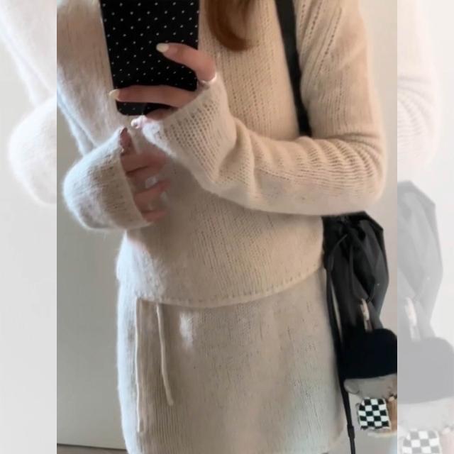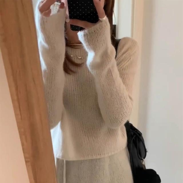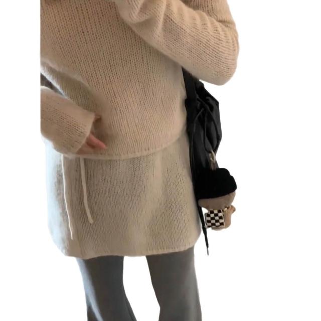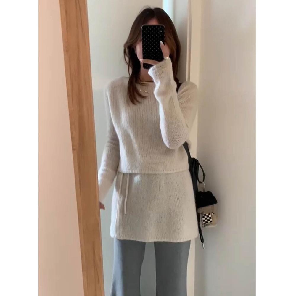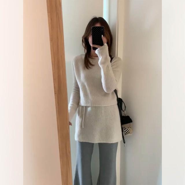 希妍 韓系穿搭白色長袖針織打底衫女秋冬設計感小眾內搭上衣屁簾兩件套
