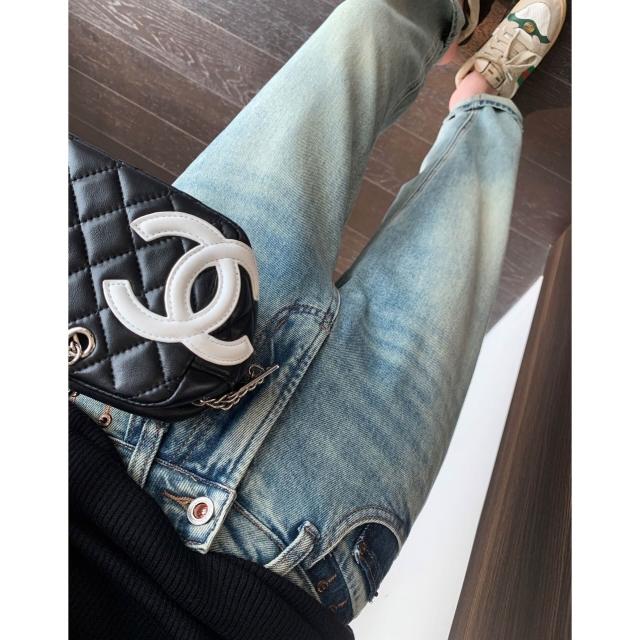 希妍 髙級水洗藍高腰顯瘦小直筒煙管牛仔褲女秋冬新款