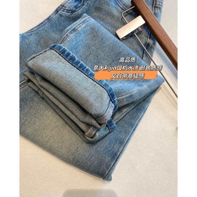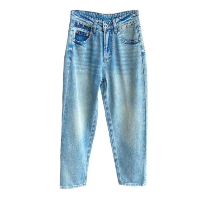 希妍 髙級水洗藍高腰顯瘦小直筒煙管牛仔褲女秋冬新款