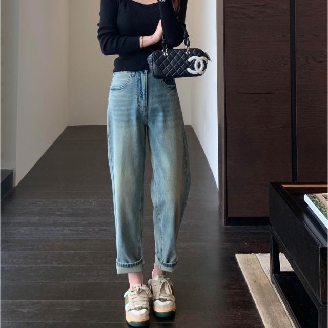 希妍 髙級水洗藍高腰顯瘦小直筒煙管牛仔褲女秋冬新款