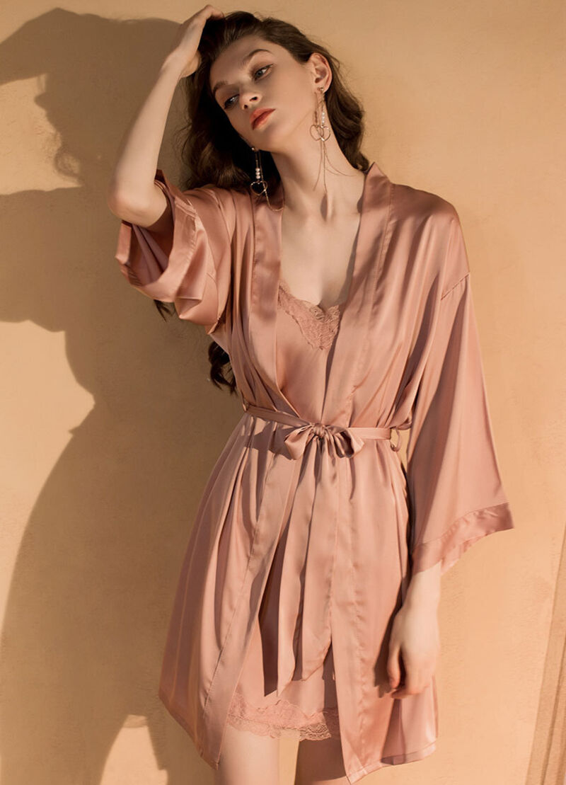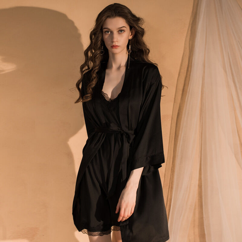 希妍 真絲吊帶睡裙女春秋夏款性感蕾絲套裝年桑蠶絲感睡衣
