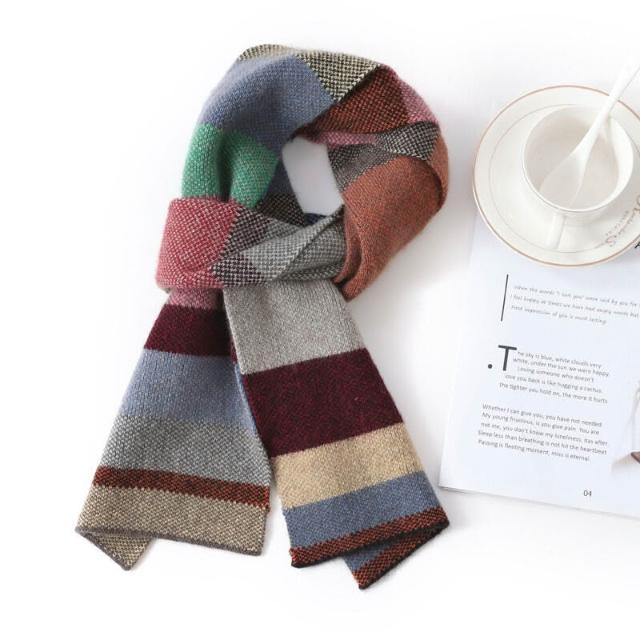 希妍設計師款 彩虹方糖 氛圍感圍巾 護頸圍脖 彩色條紋 10絨圍巾