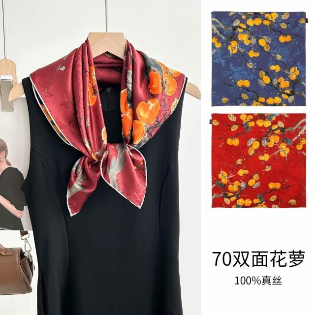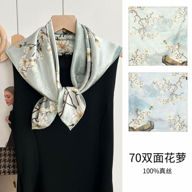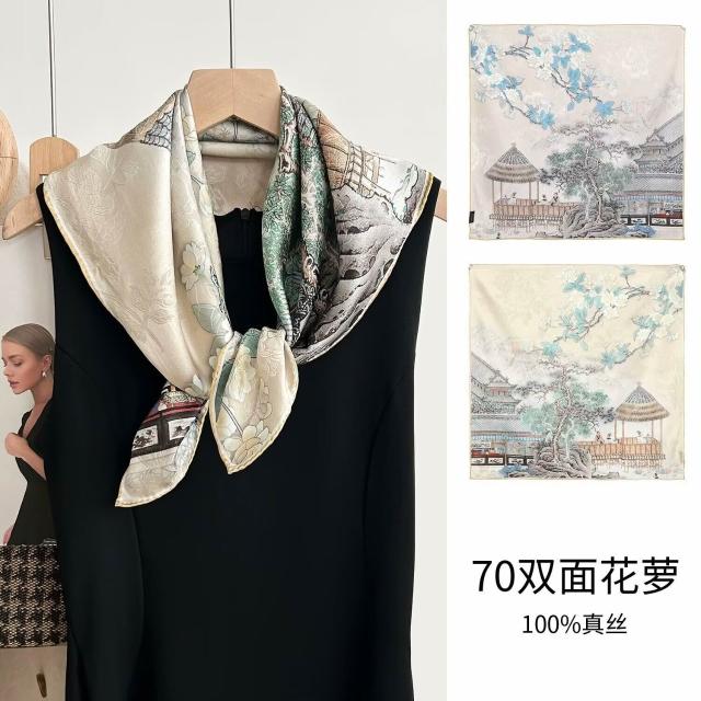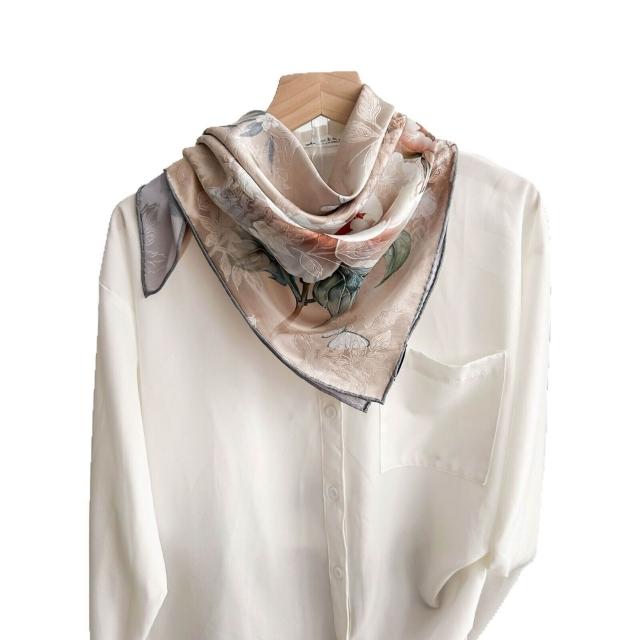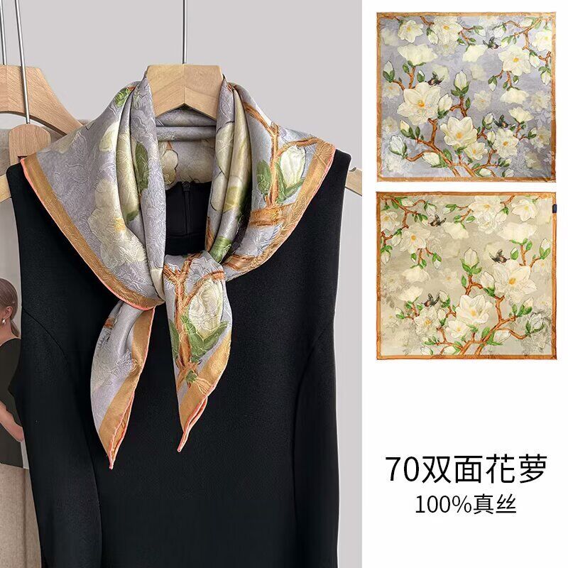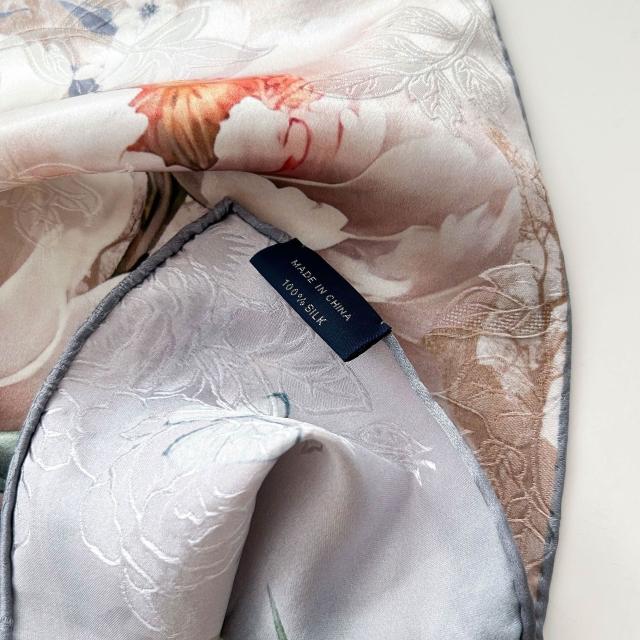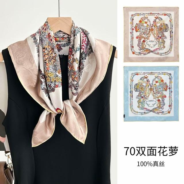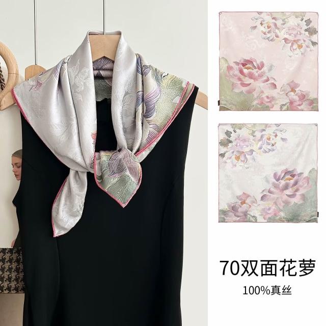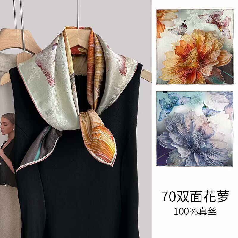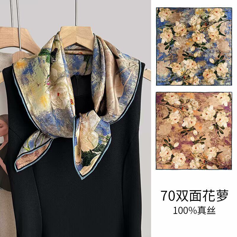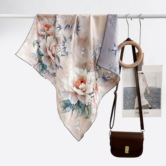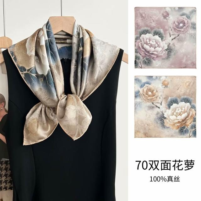 新款國風牡丹真絲花蘿絲巾女高級感重磅19姆米100%桑蠶絲中方巾