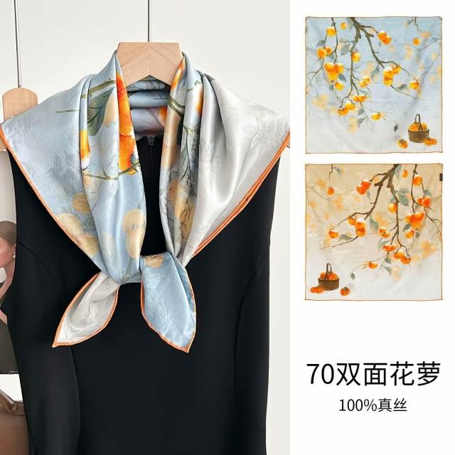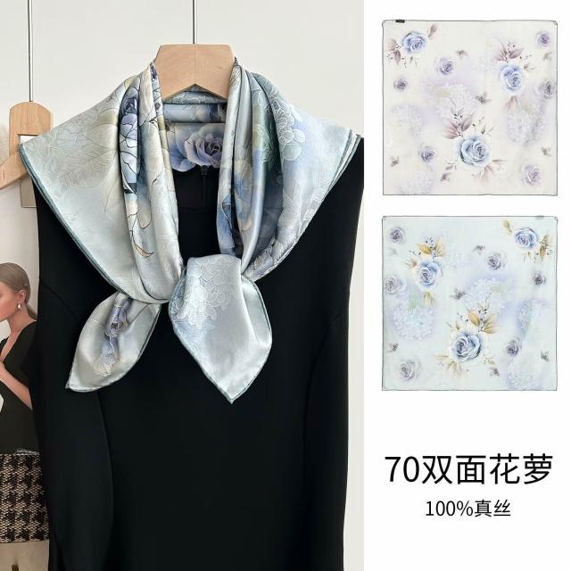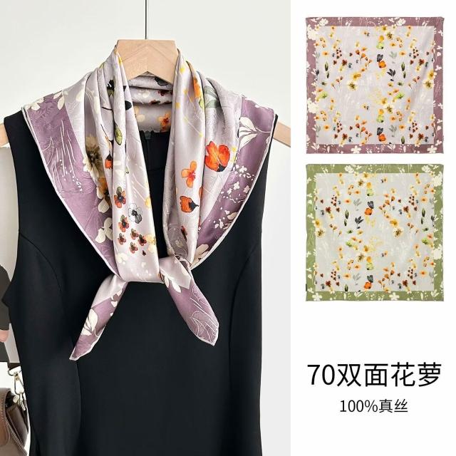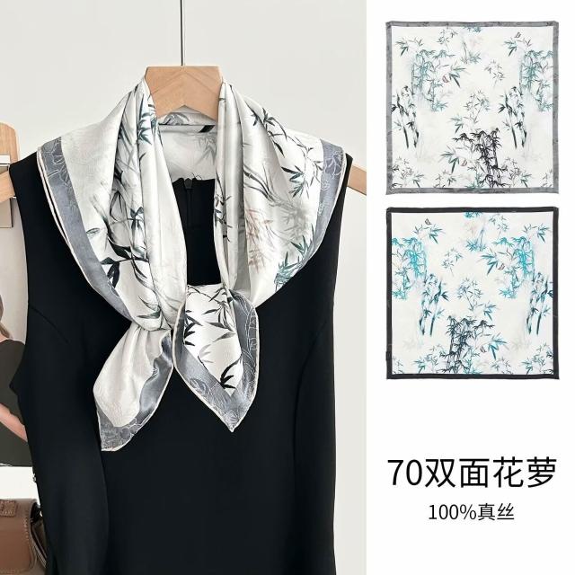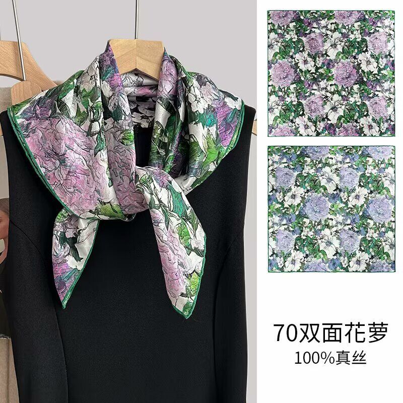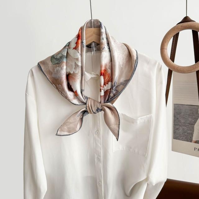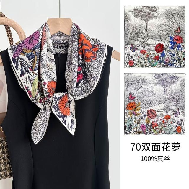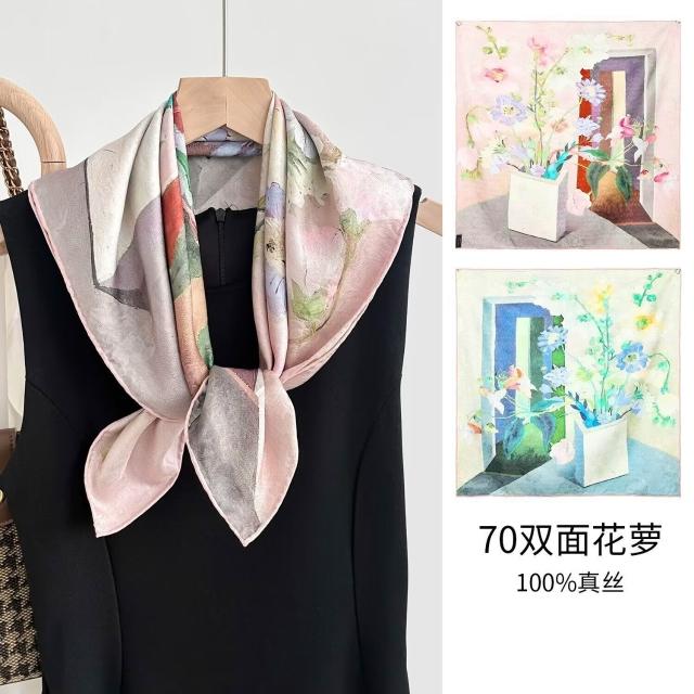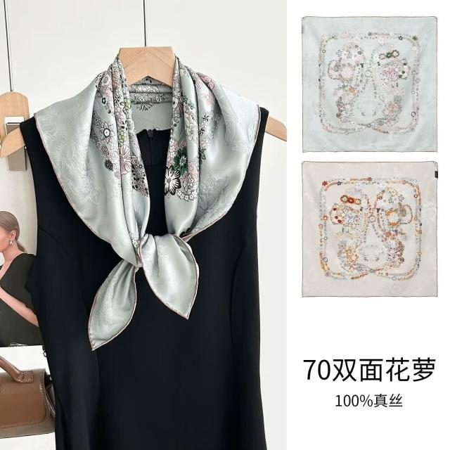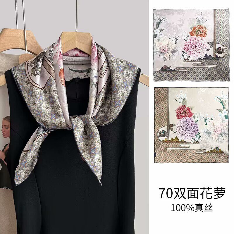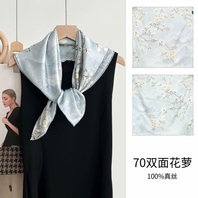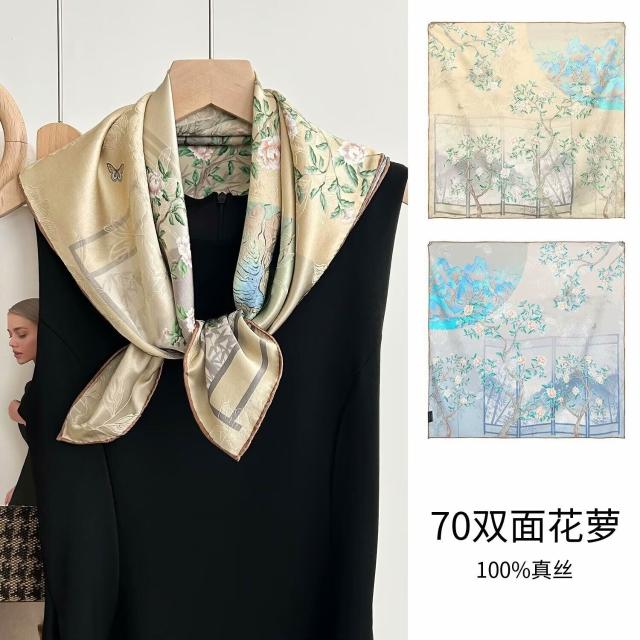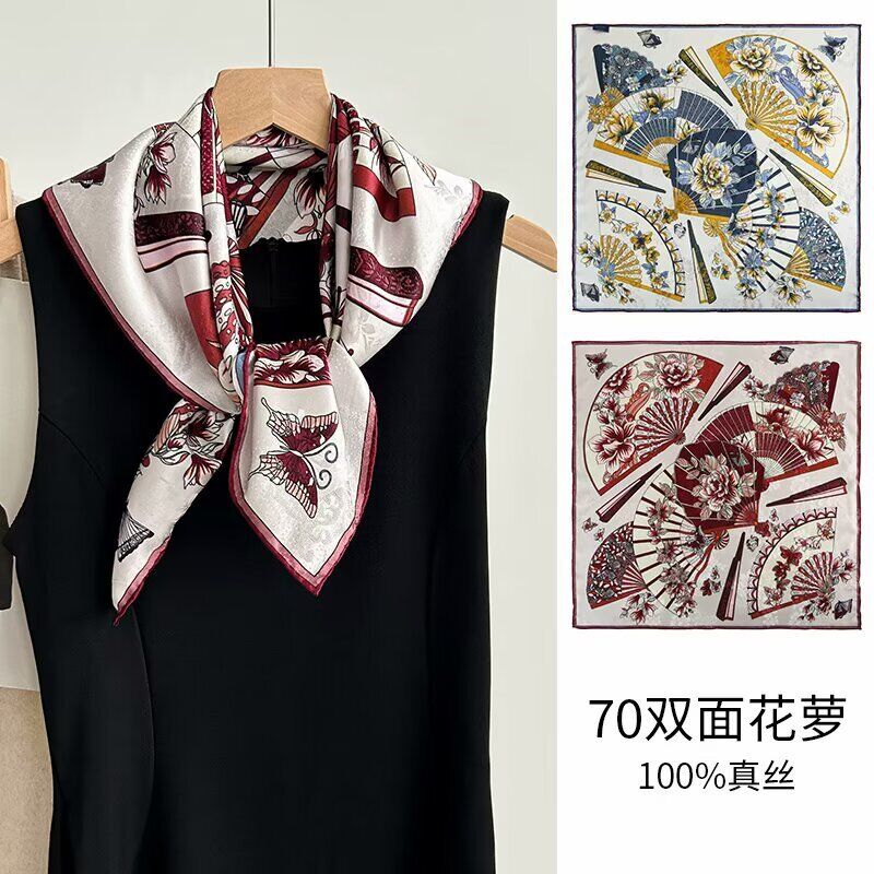新款國風牡丹真絲花蘿絲巾女高級感重磅19姆米100%桑蠶絲中方巾