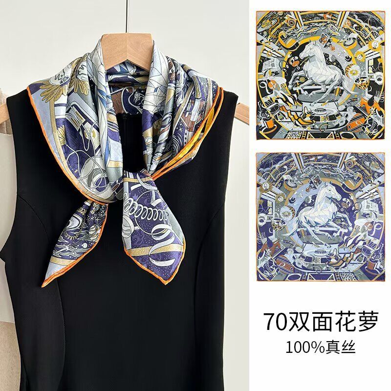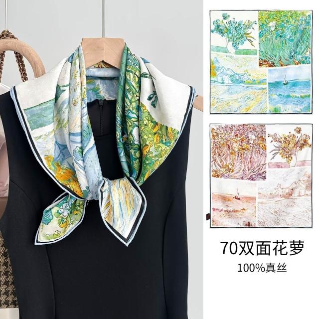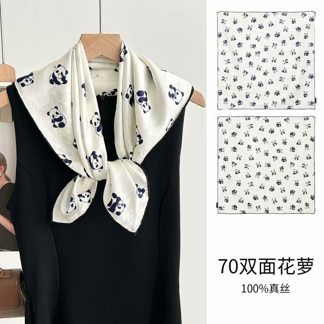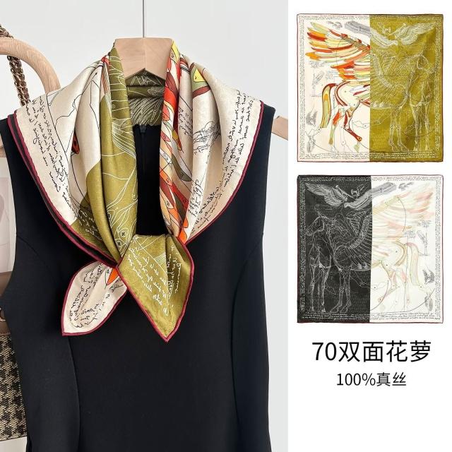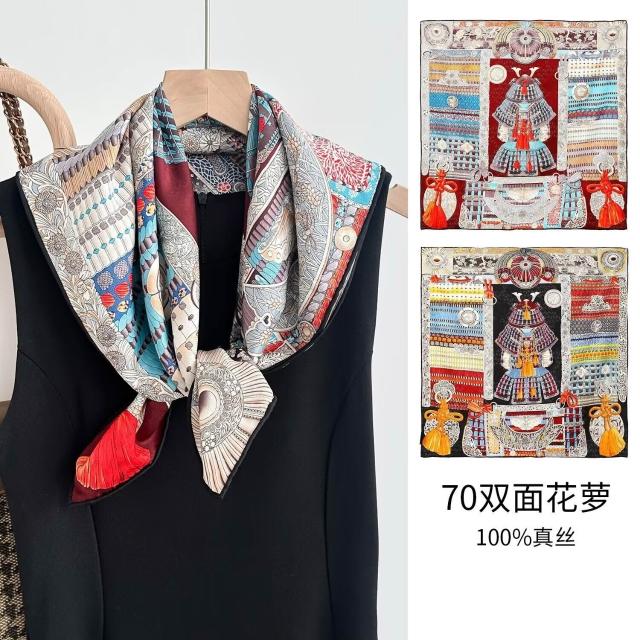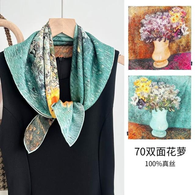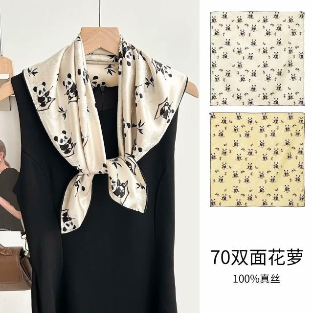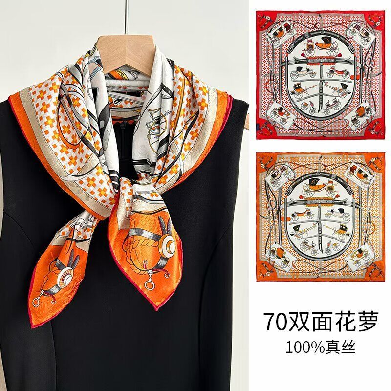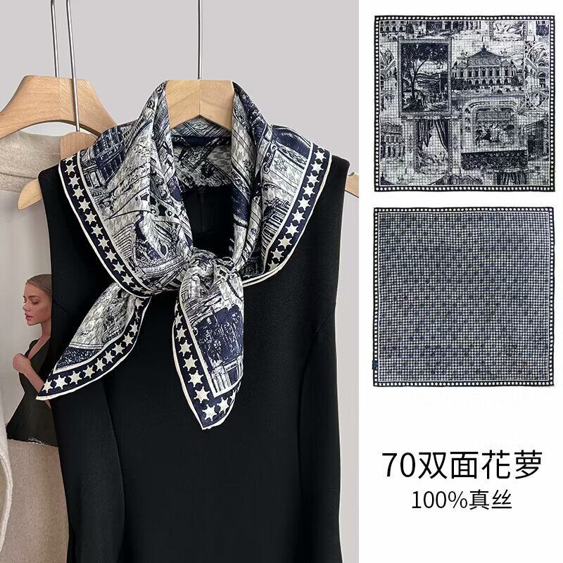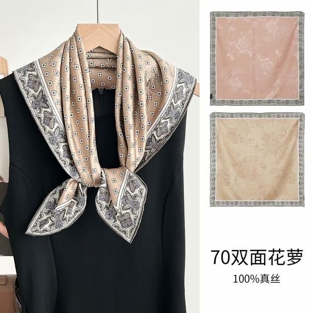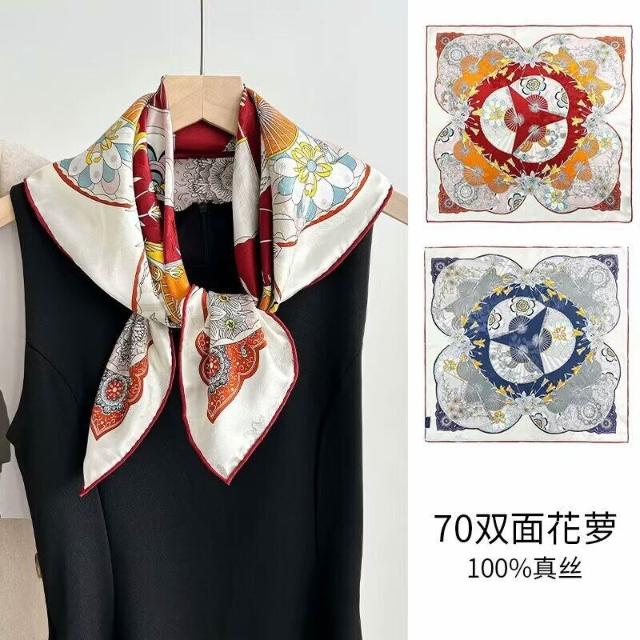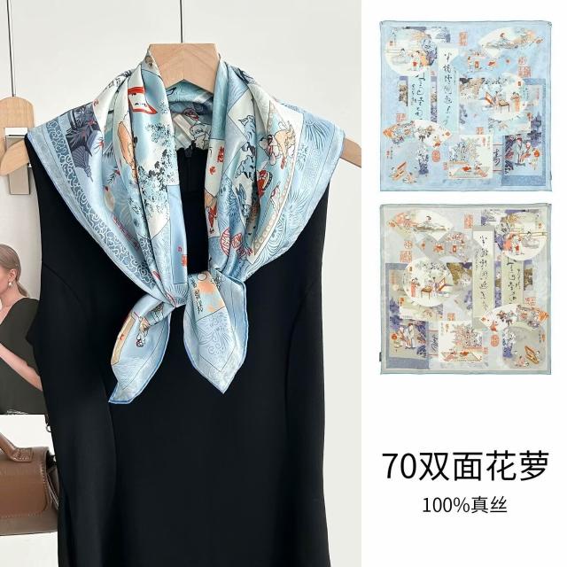 新款國風牡丹真絲花蘿絲巾女高級感重磅19姆米100%桑蠶絲中方巾