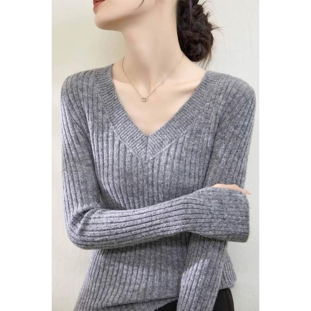 2025冬季新款駝色V領毛衣加厚款長袖針織衫防風套手指設計上衣女