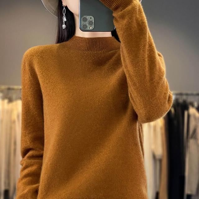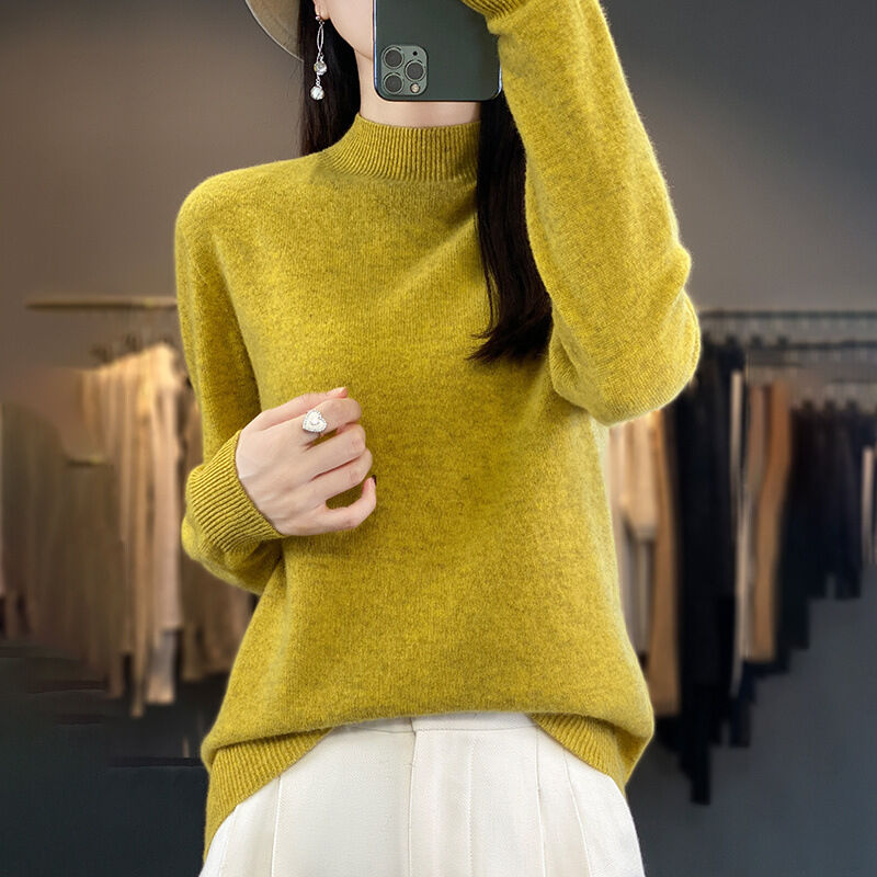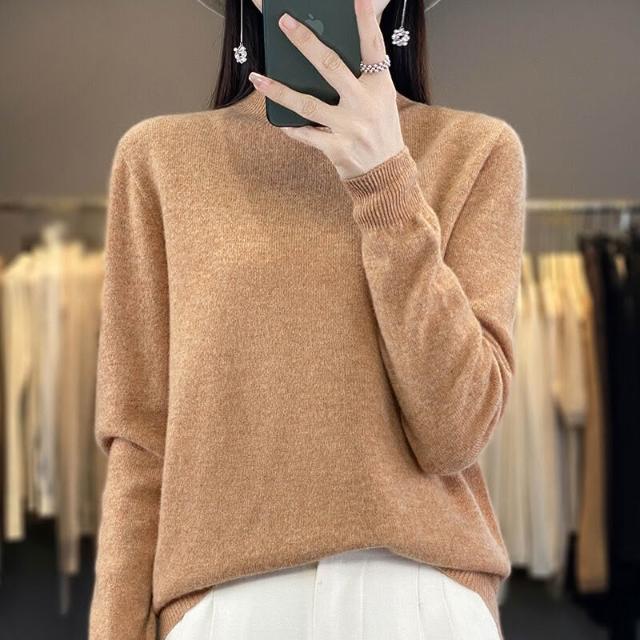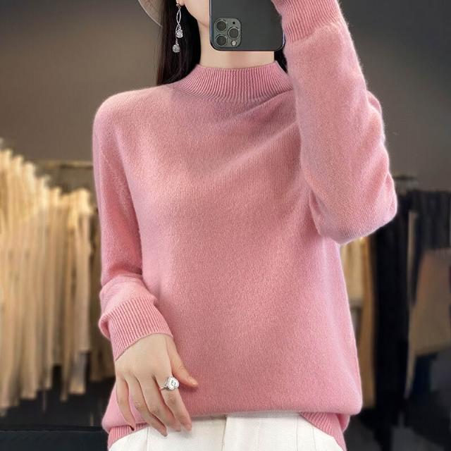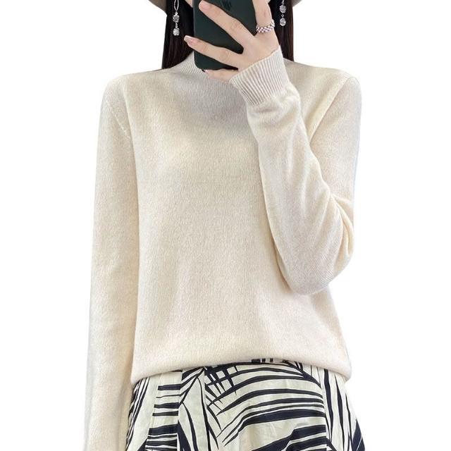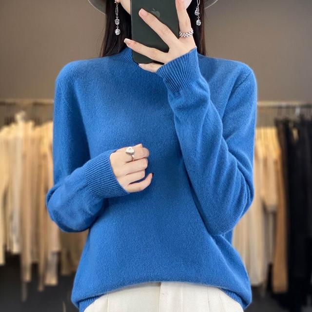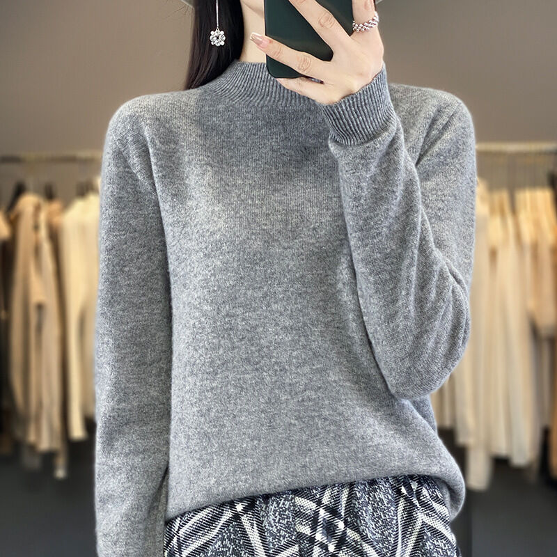 一線成衣半高領100%純羊毛衫女套頭長袖毛衣針織寬松百搭打底上衣
