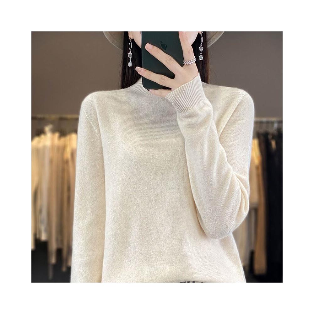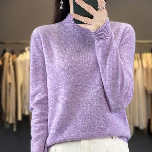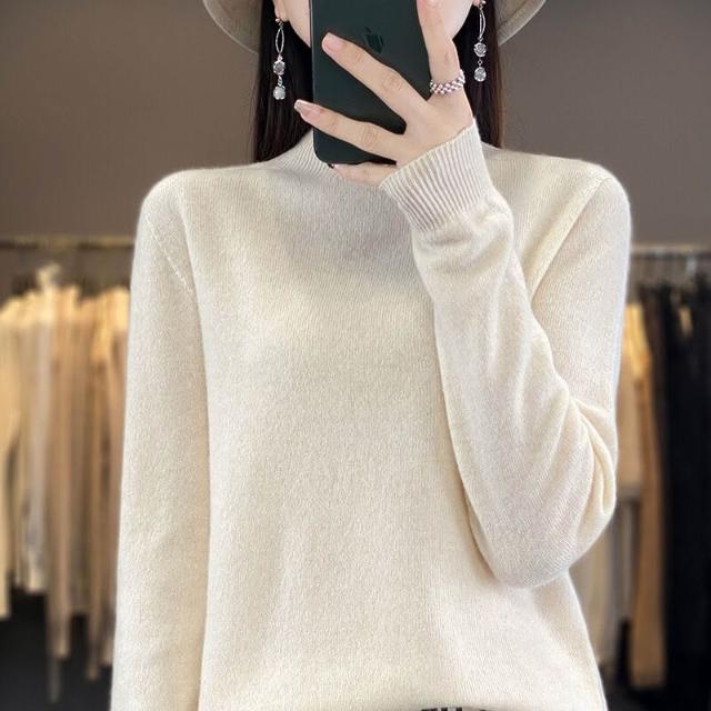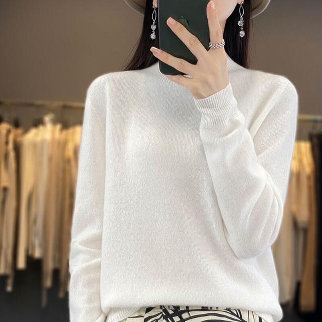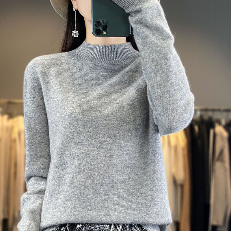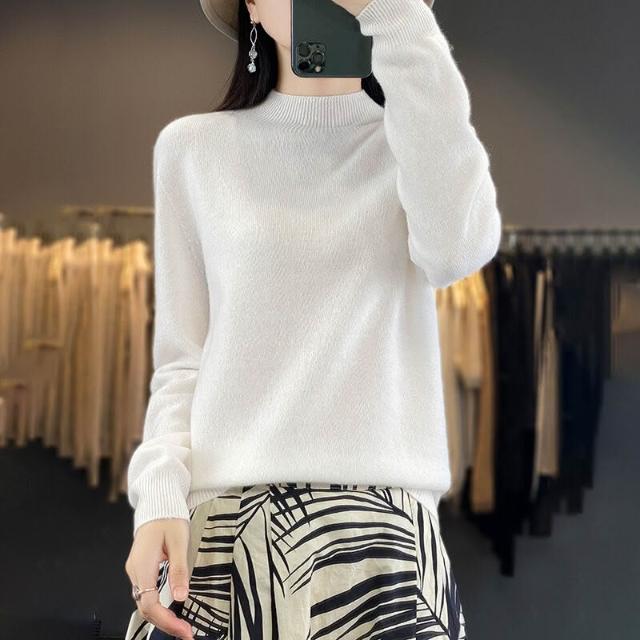 一線成衣半高領100%純羊毛衫女套頭長袖毛衣針織寬松百搭打底上衣