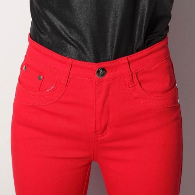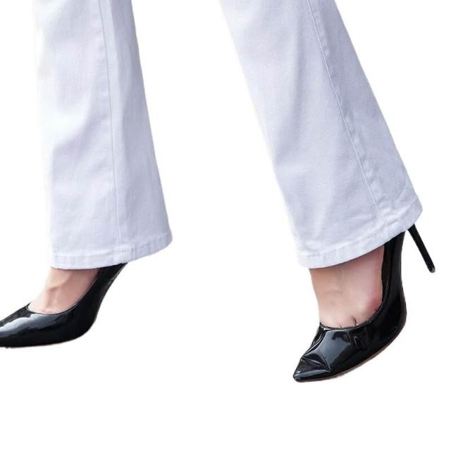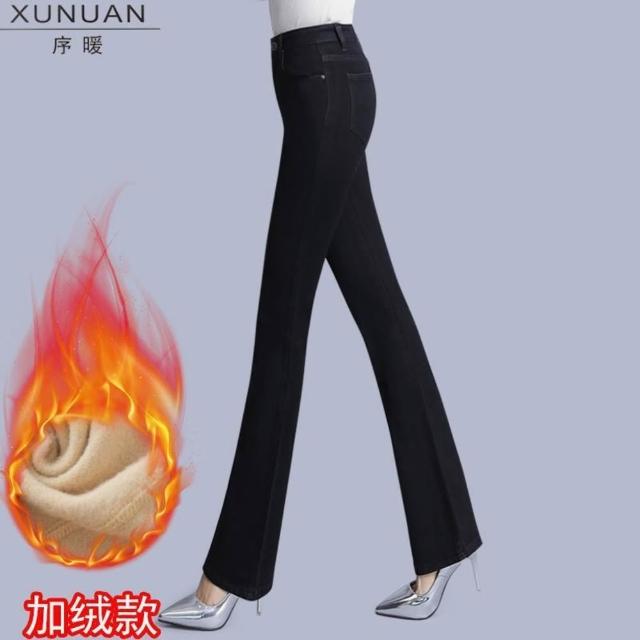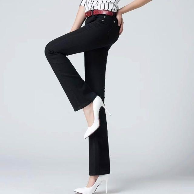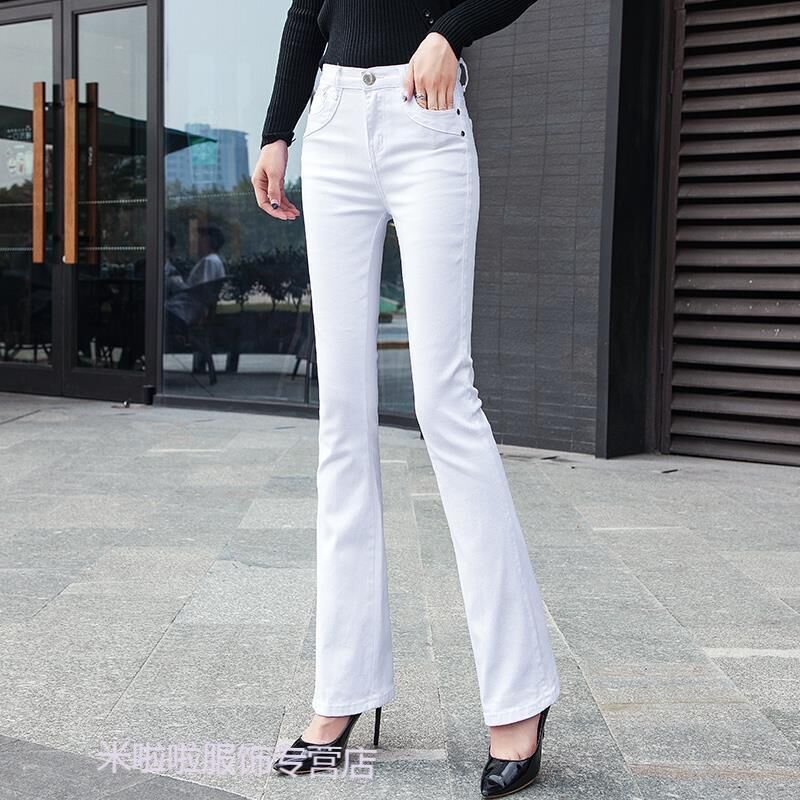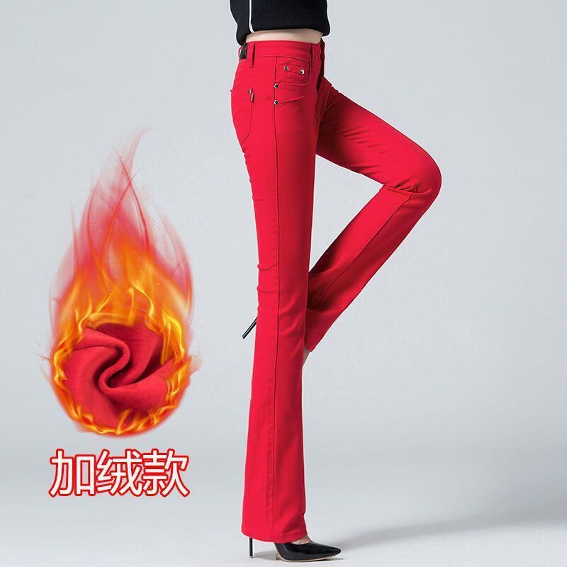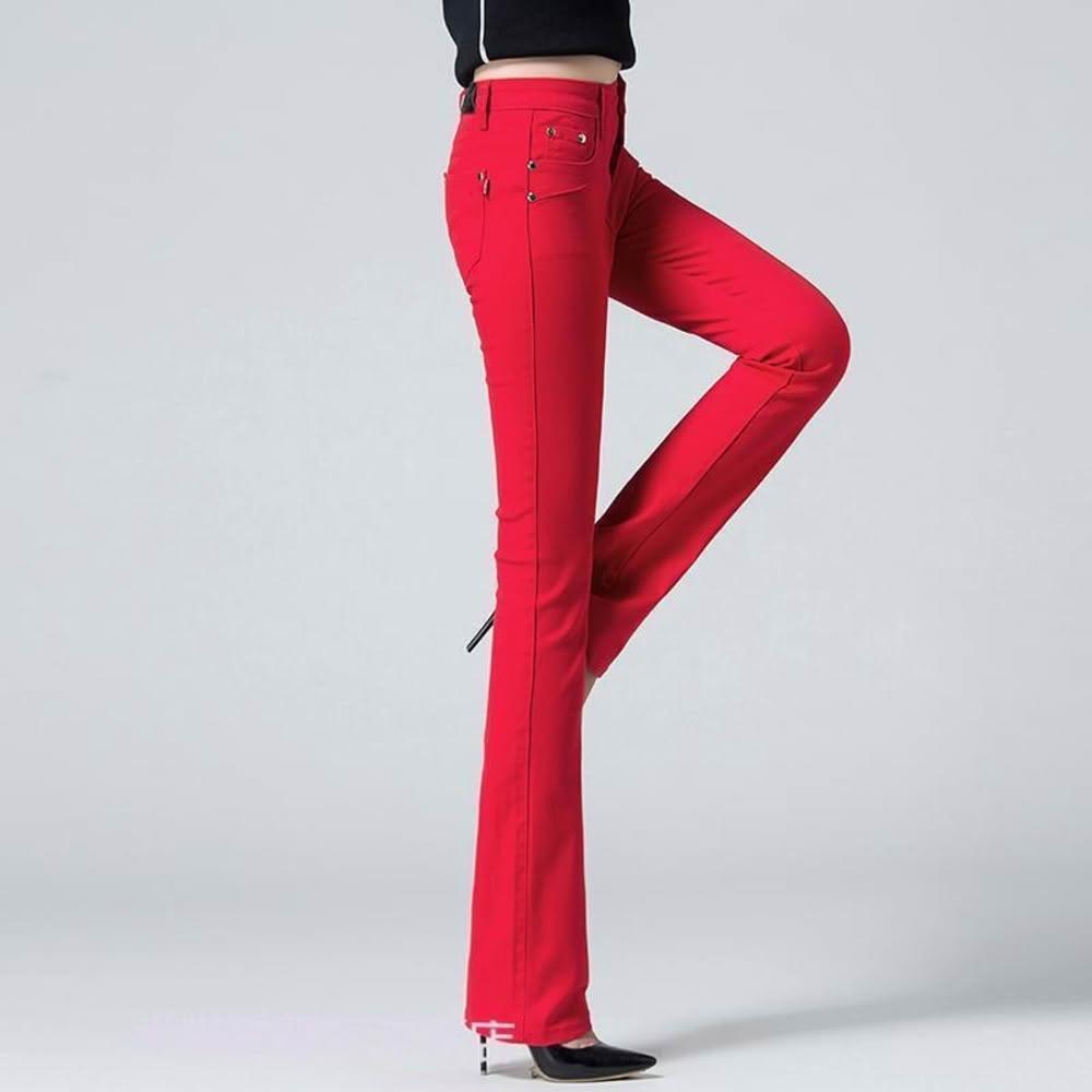 希妍 紅色微喇牛仔褲女2024年夏季薄款高腰顯瘦彈力修身大碼喇叭褲子女