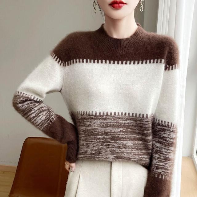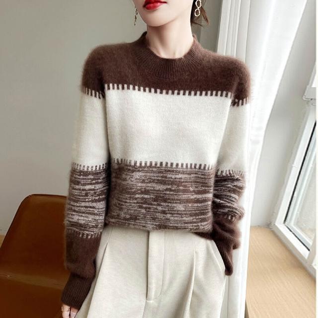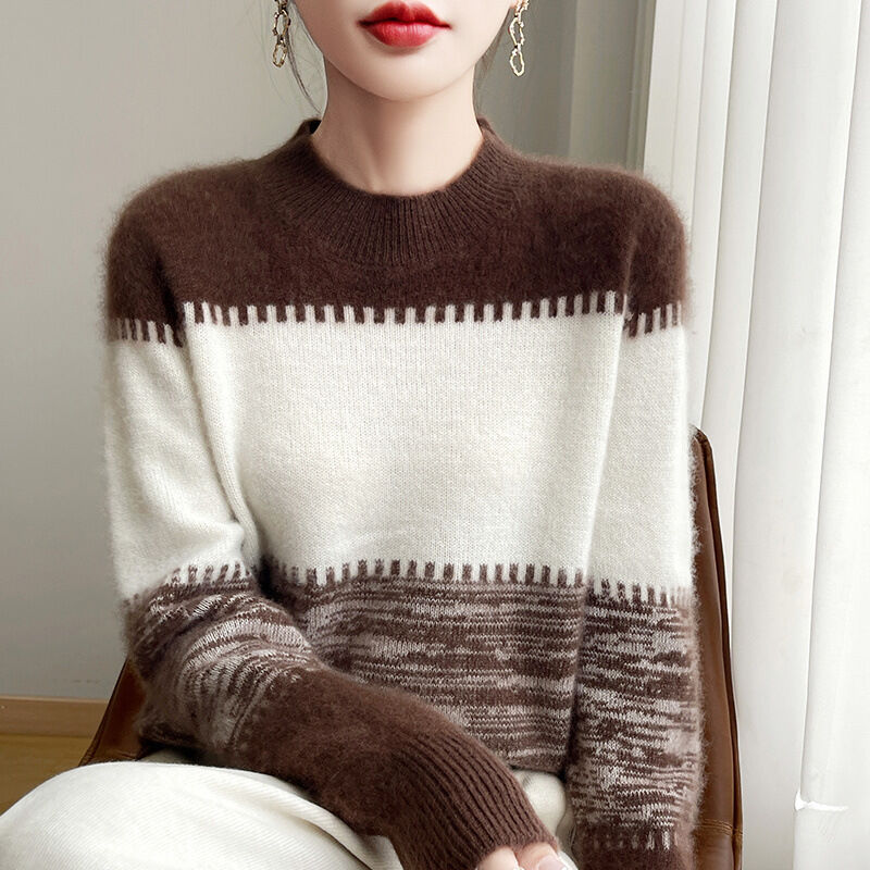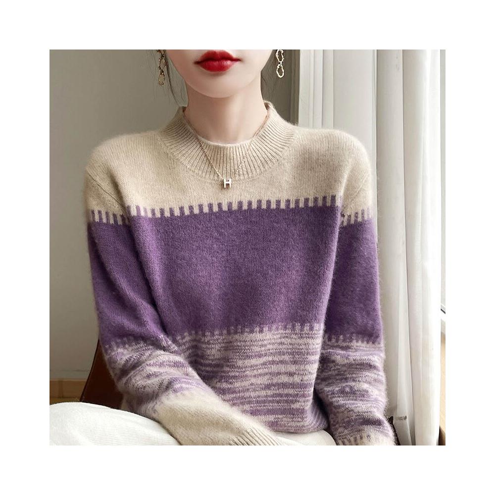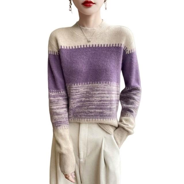希妍 漸變拼色羊絨毛衣女半高領長袖套頭針織衫秋冬加厚100純羊毛衫新