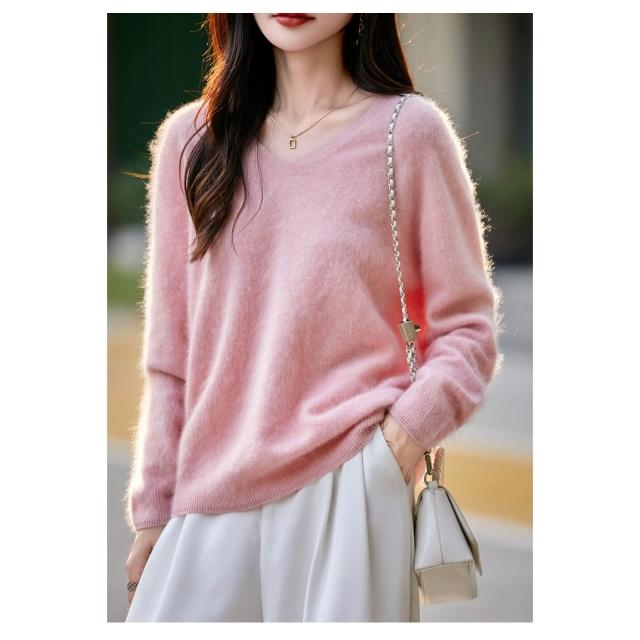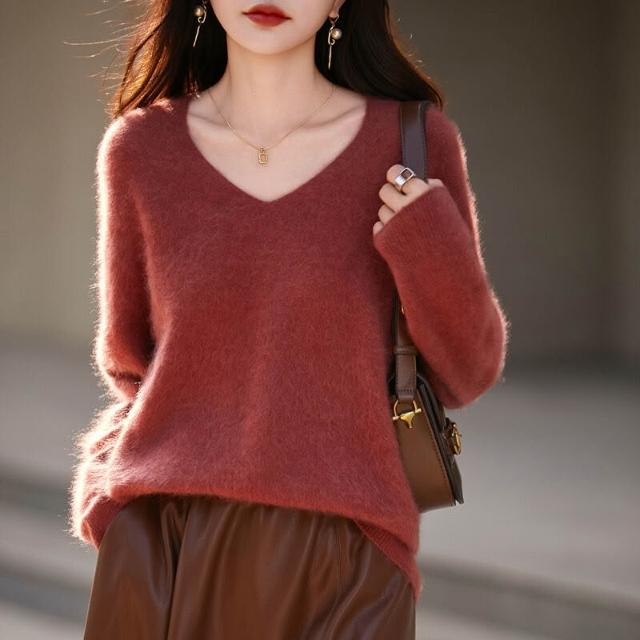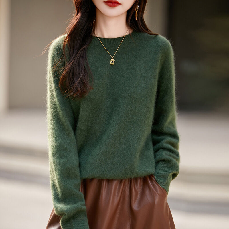 希妍 一線成衣拉絨純羊毛衫女秋冬新款保暖圓領毛衣寬松打底針織衫上衣