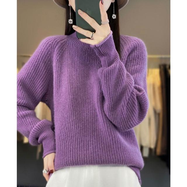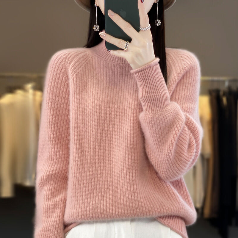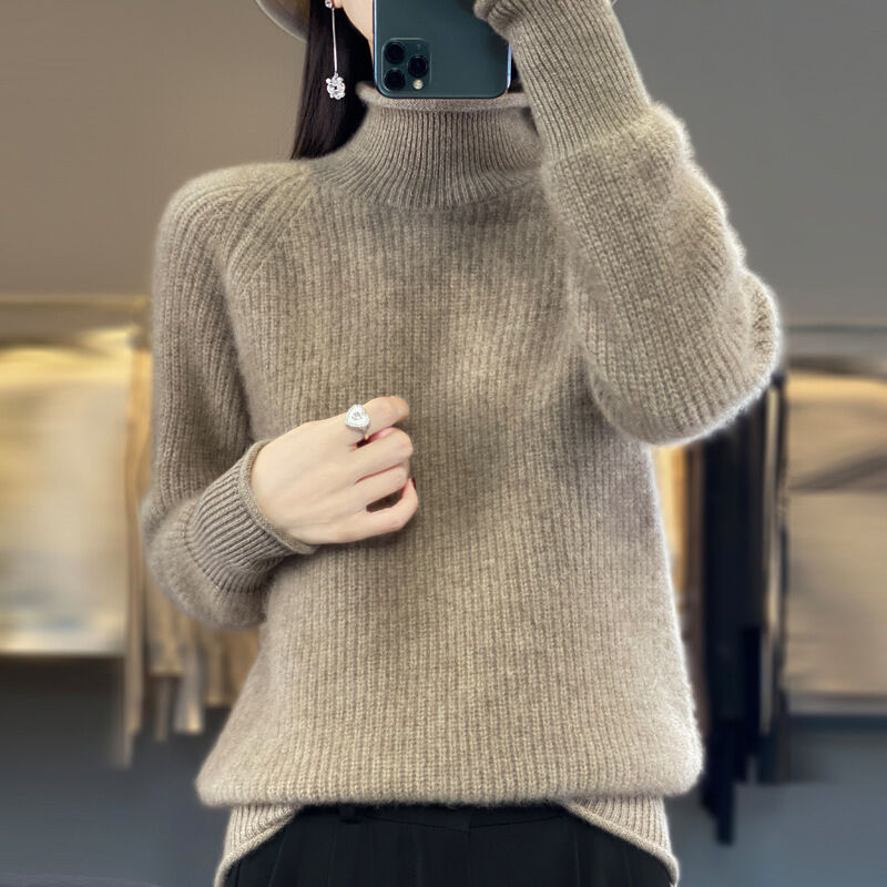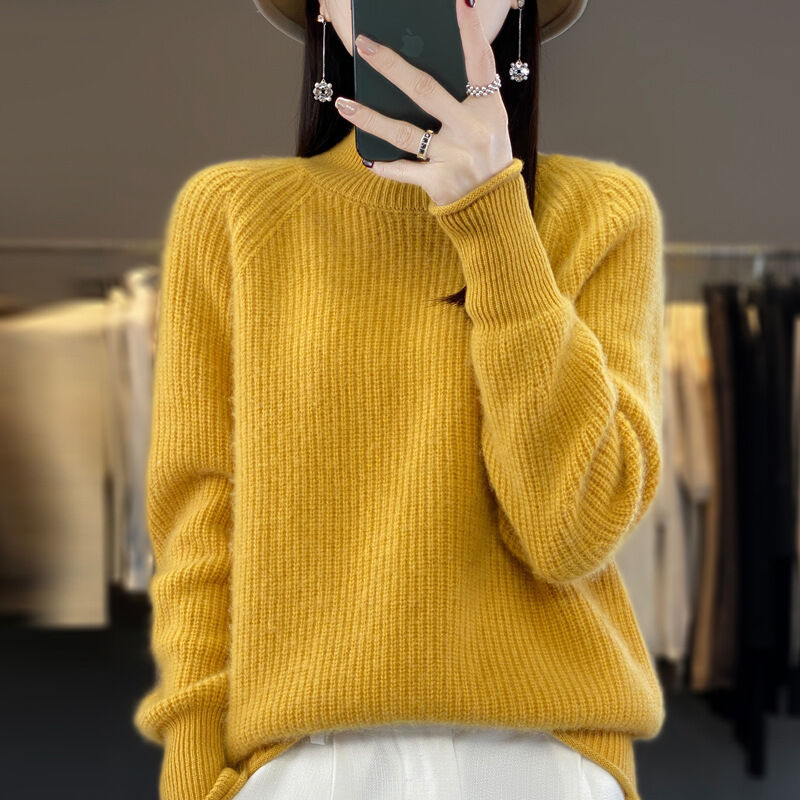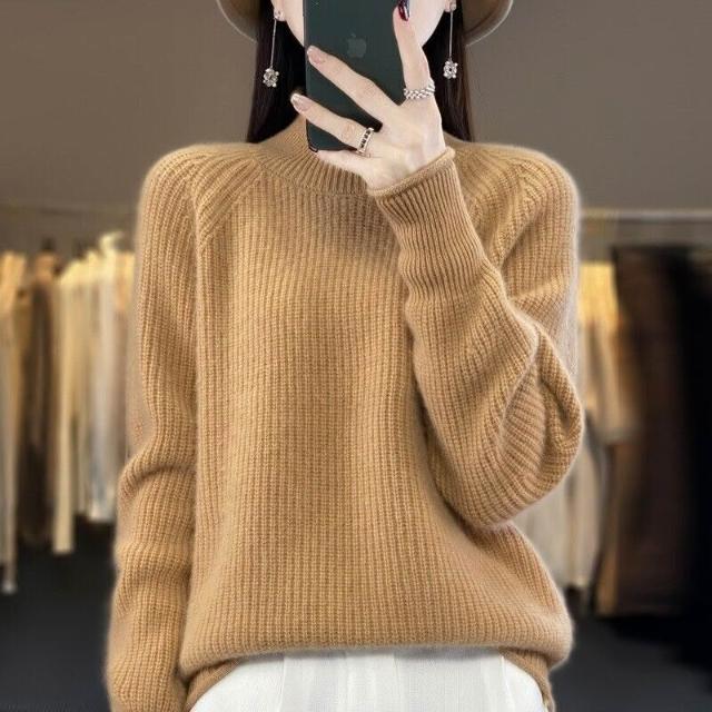 希妍 七針加厚元寶針寬松顯瘦針織打底衫長袖毛衣女半高領卷邊羊毛衫女