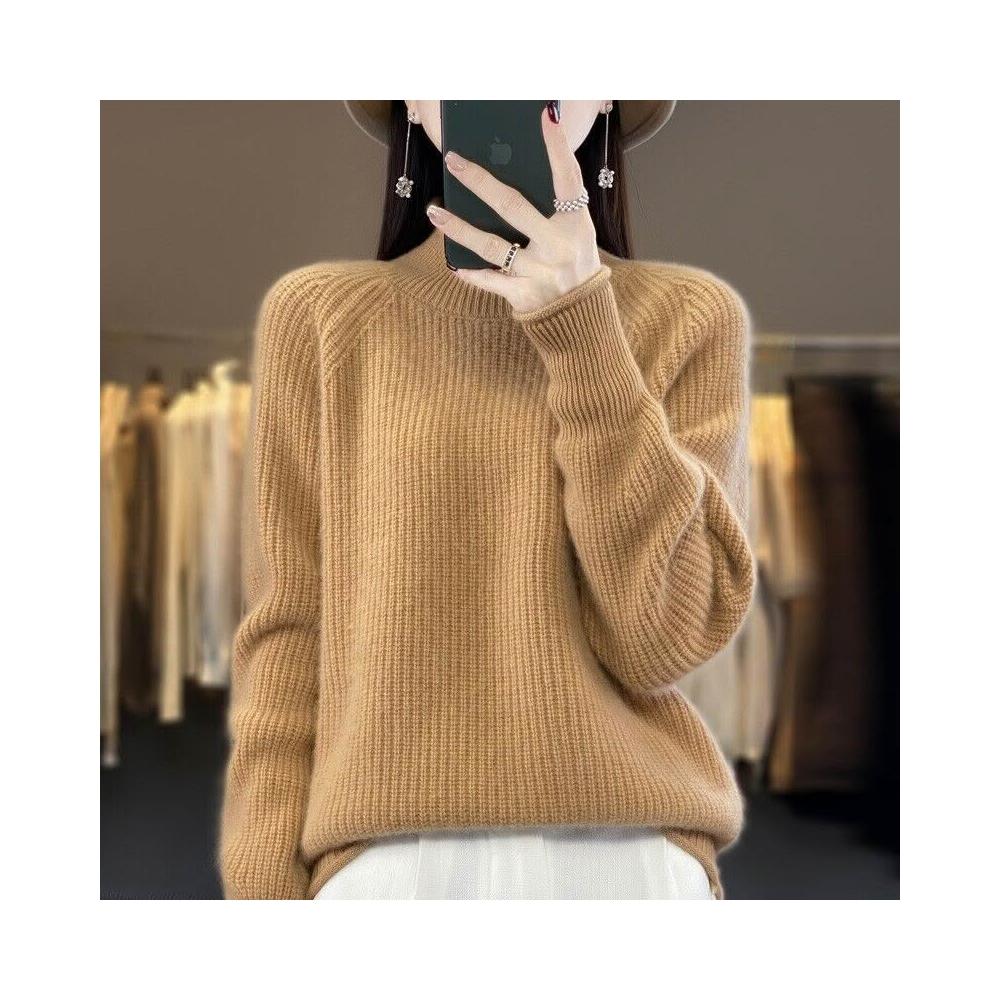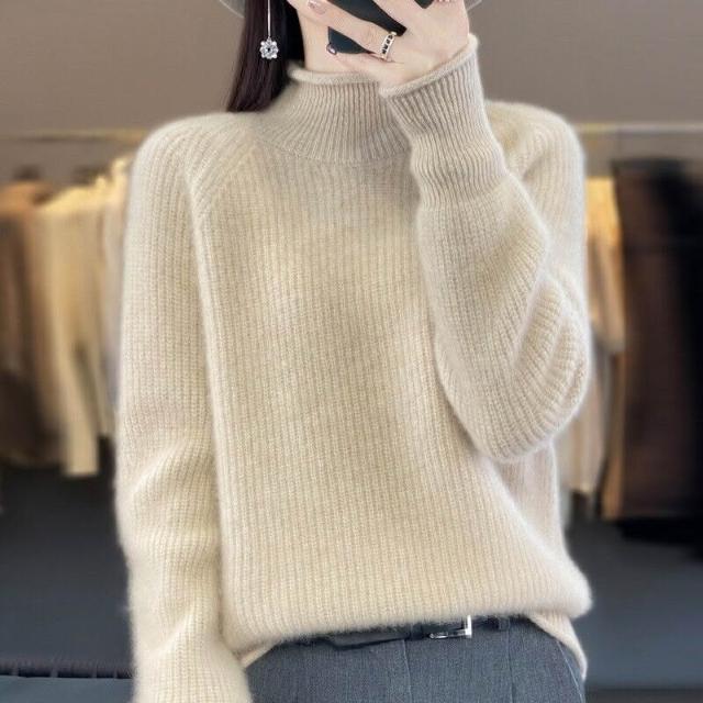 希妍 七針加厚元寶針寬松顯瘦針織打底衫長袖毛衣女半高領卷邊羊毛衫女