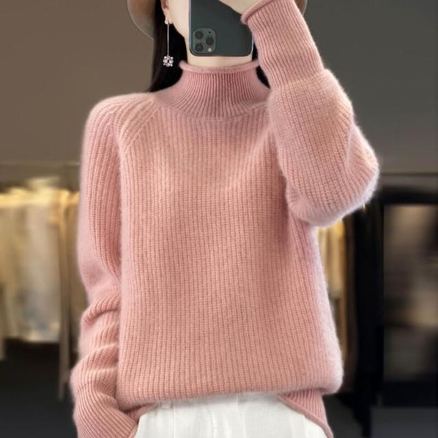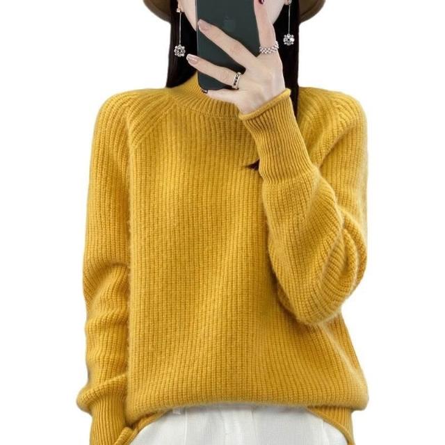 希妍 七針加厚元寶針寬松顯瘦針織打底衫長袖毛衣女半高領卷邊羊毛衫女