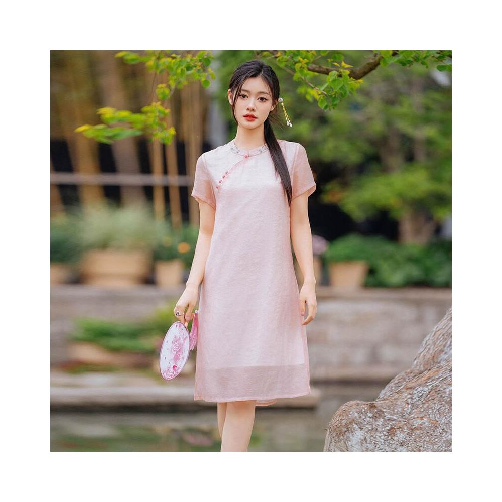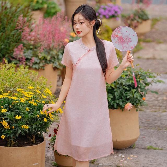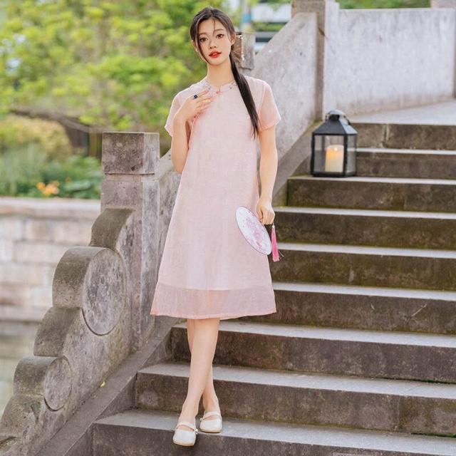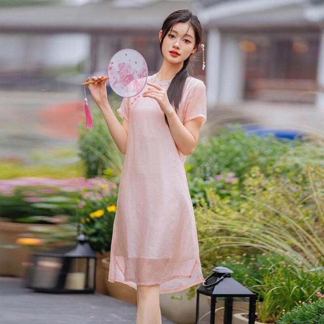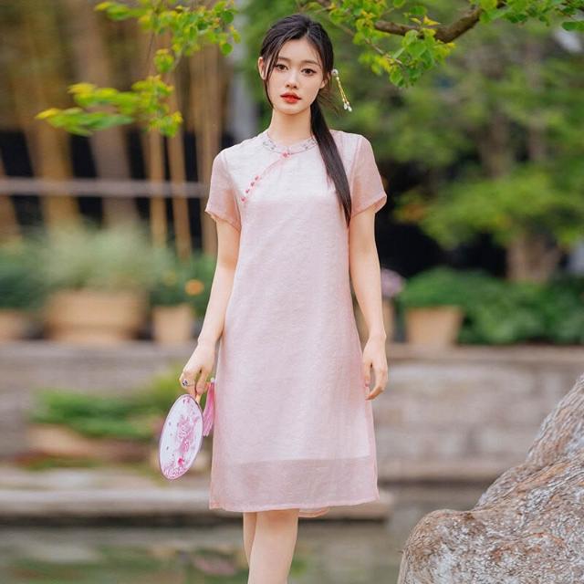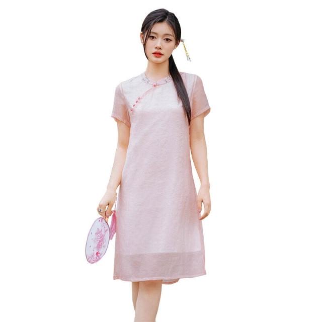 希妍 改良旗袍年輕款國風少女茶藝師中式禅意茶服棉麻連衣裙女夏小個子