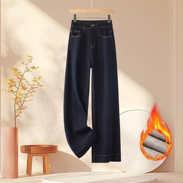 秋冬保暖窄版牛仔褲女2025高腰顯瘦小個子直筒褲
