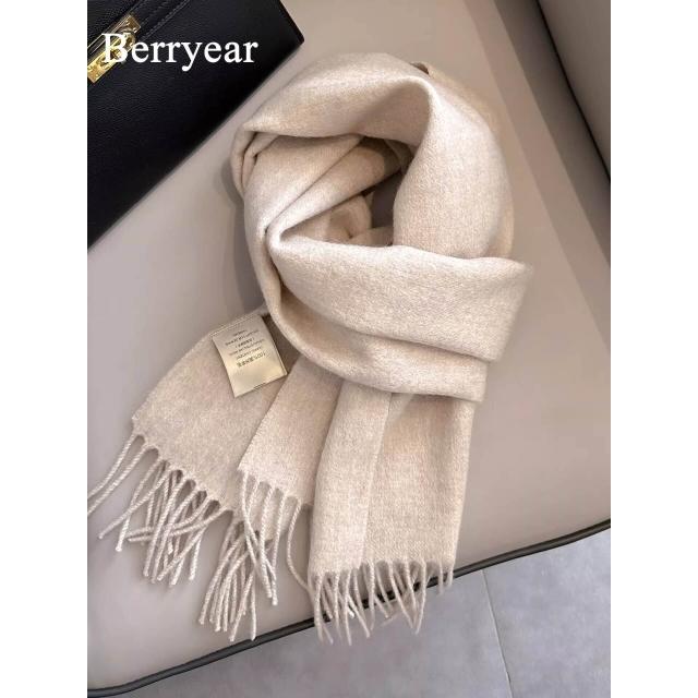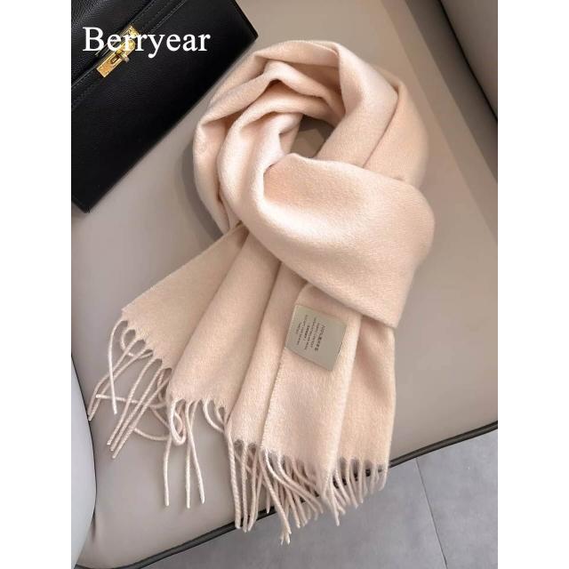 希妍 奶白色100%純羊毛圍巾女秋冬季2025新款百搭保暖圍脖情侶生日禮物