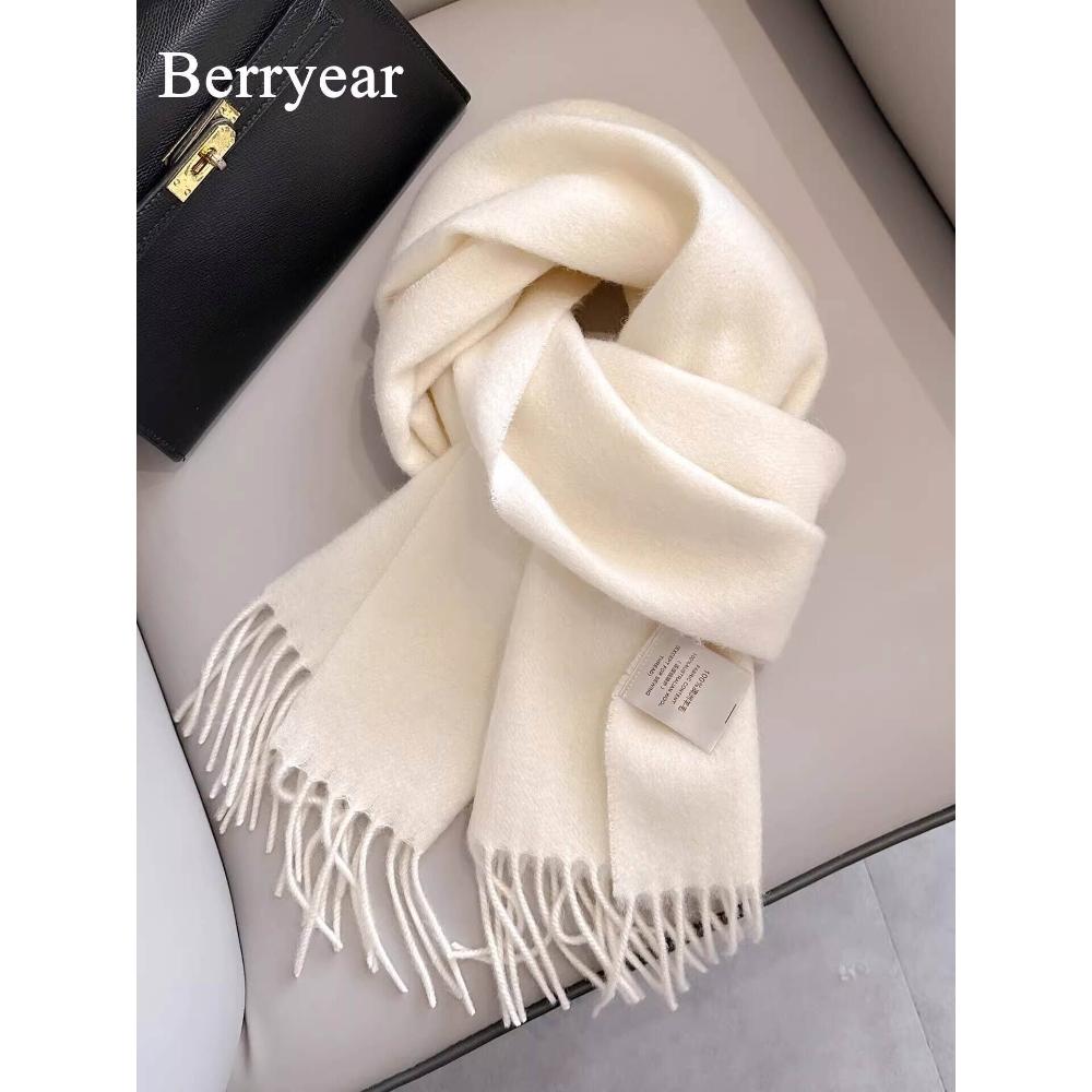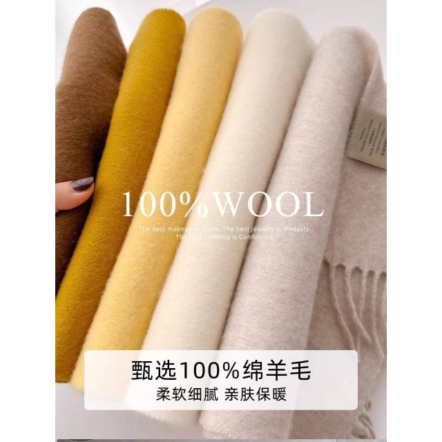 希妍 奶白色100%純羊毛圍巾女秋冬季2025新款百搭保暖圍脖情侶生日禮物
