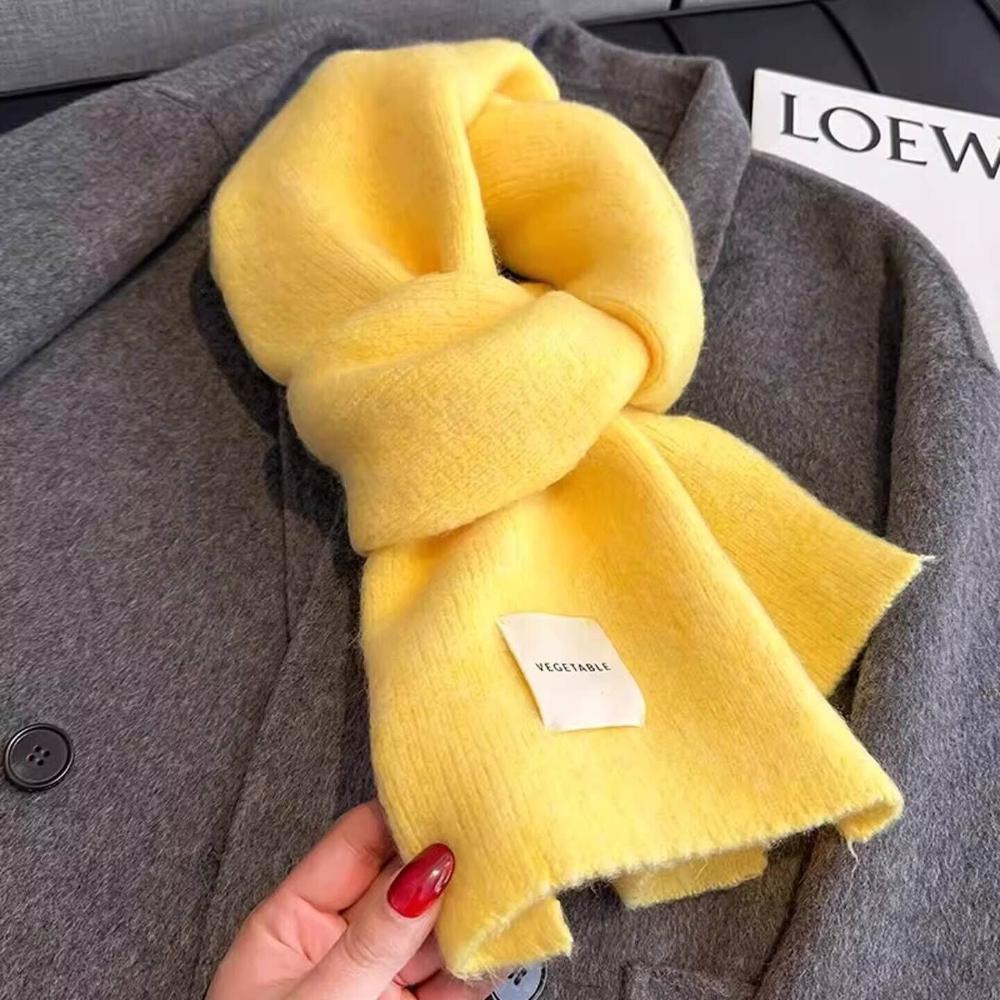 希妍 鵝黃嫩黃嫩黃色針織毛線仿羊絨厚圍巾女生秋冬季兒童圍脖短小護頸