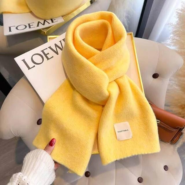 希妍 鵝黃嫩黃嫩黃色針織毛線仿羊絨厚圍巾女生秋冬季兒童圍脖短小護頸