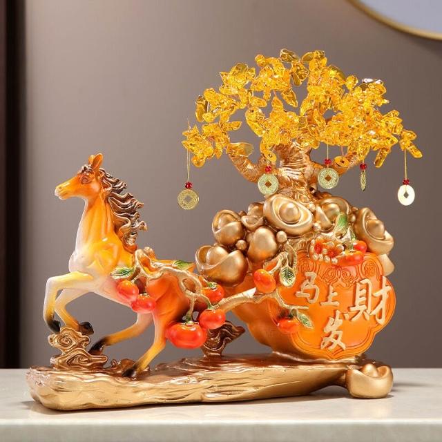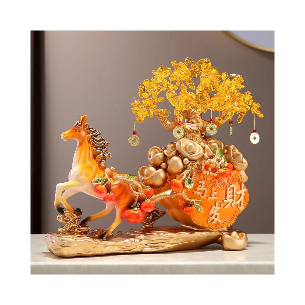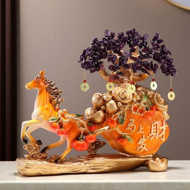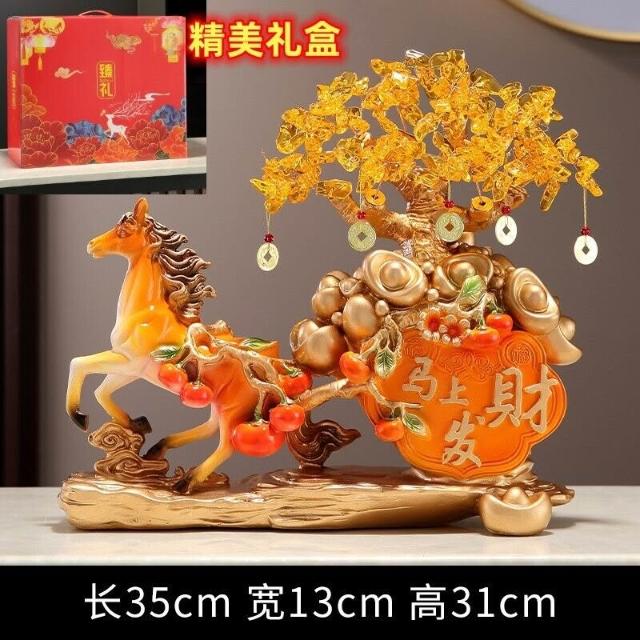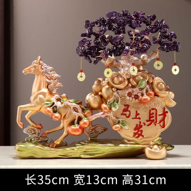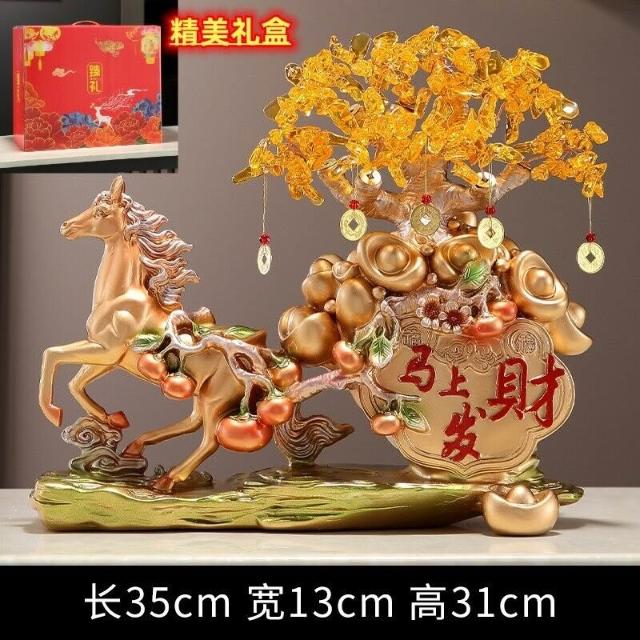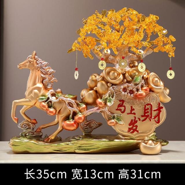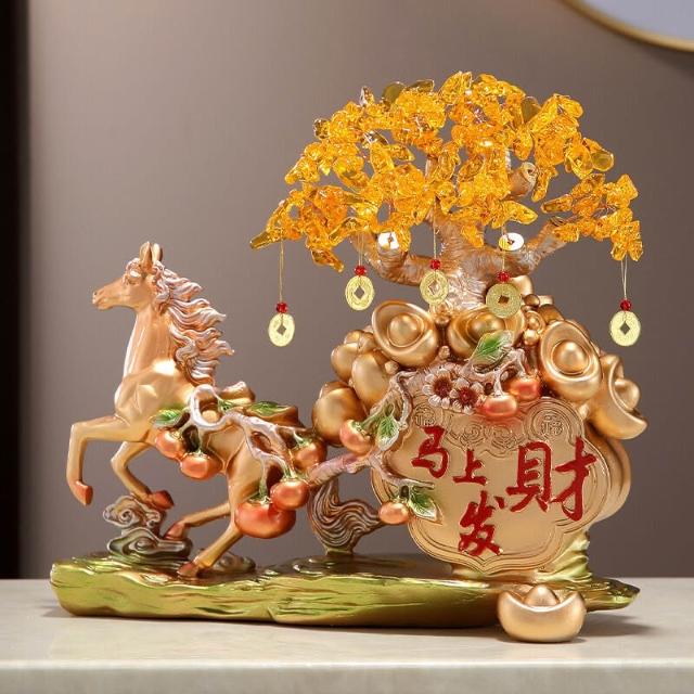 希妍 馬上發財擺件馬上有錢家居客廳酒櫃玄關裝飾品招財發財樹開業禮品