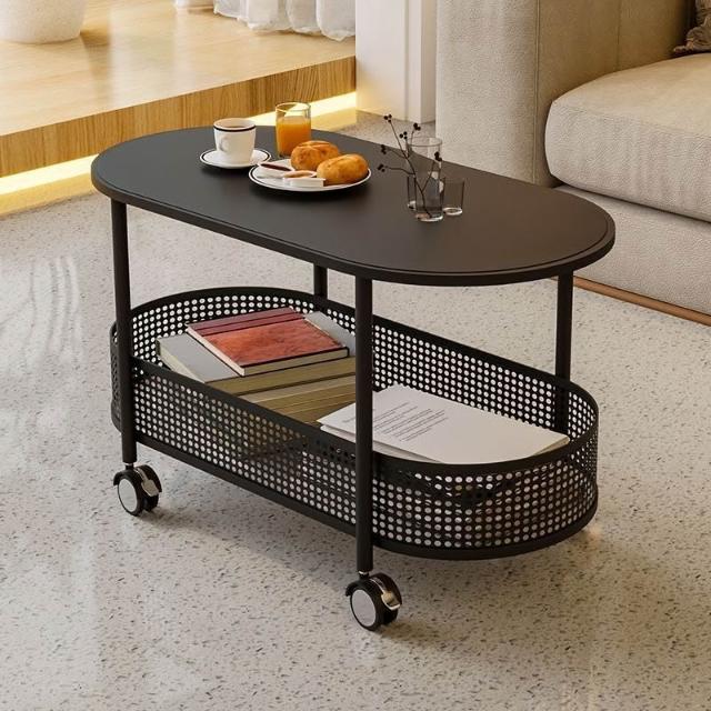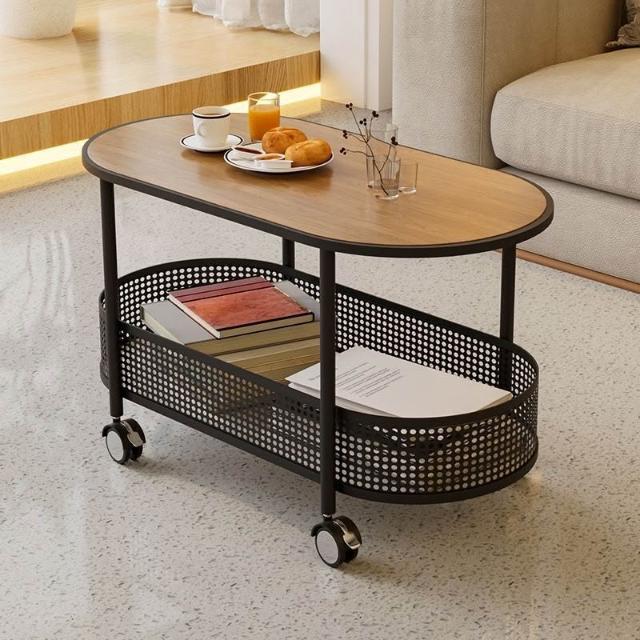 希妍客廳沙發邊幾帶輪可移動小茶幾中古小推車藝術巖板邊桌茶桌