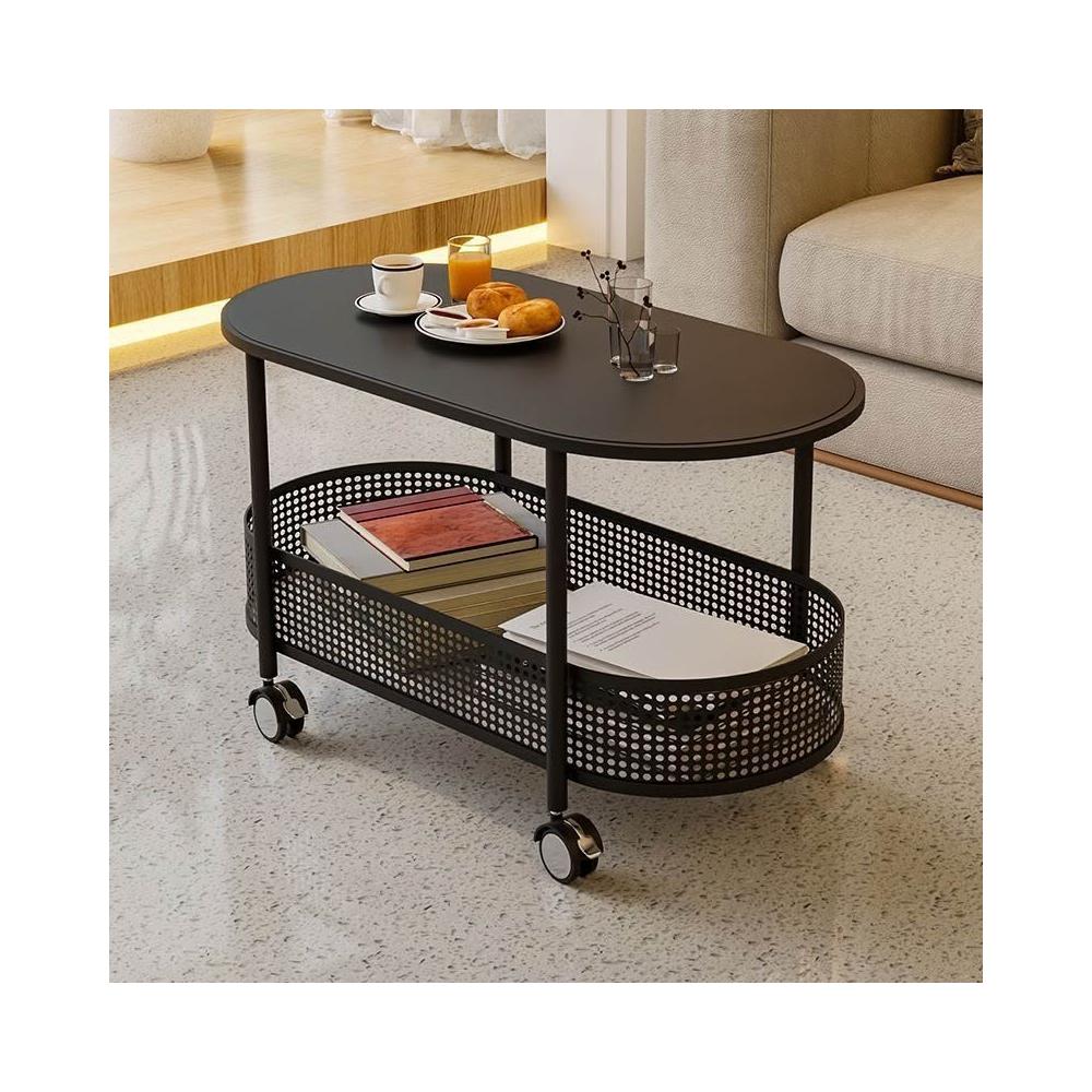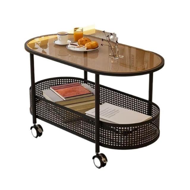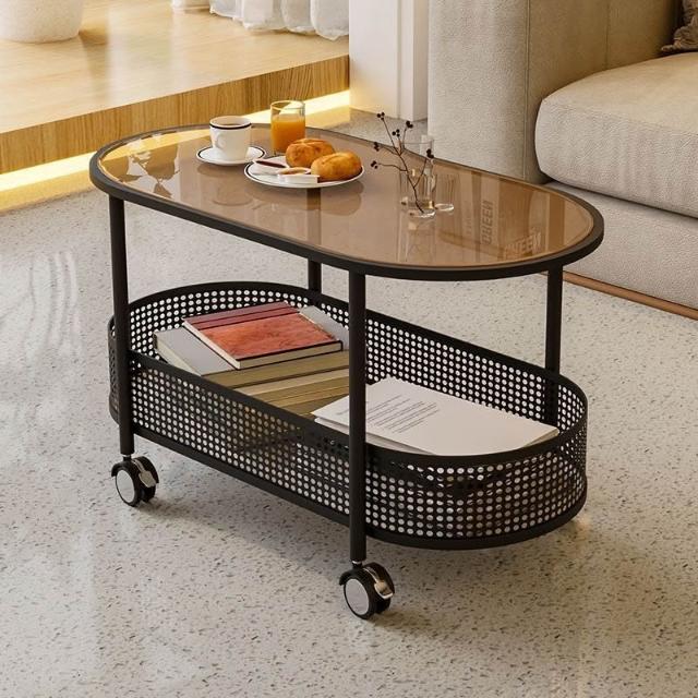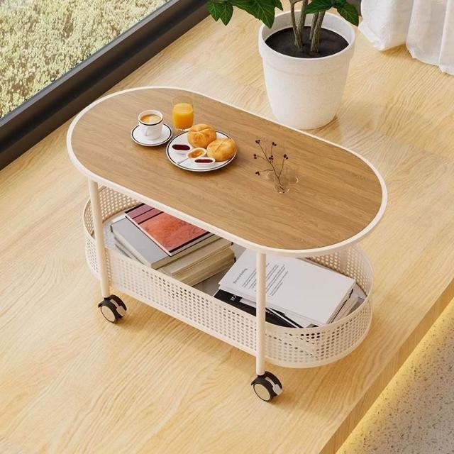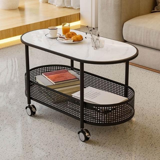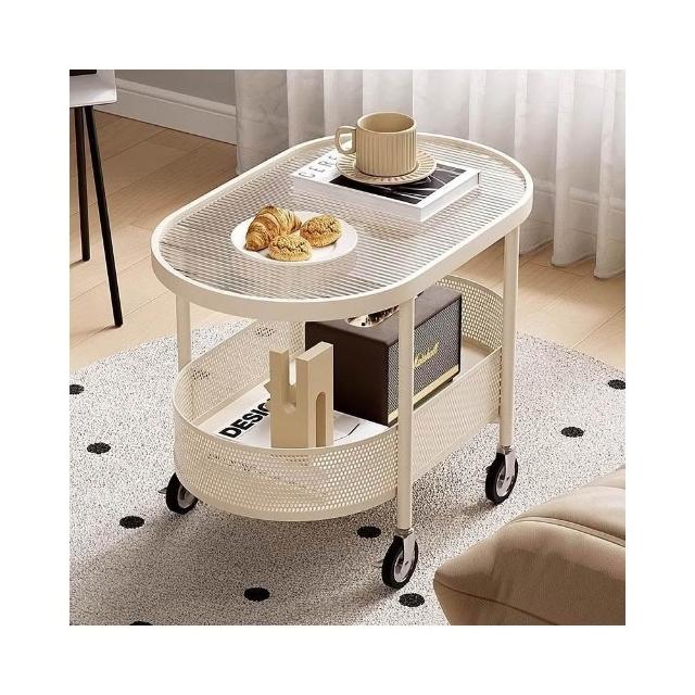 希妍客廳沙發邊幾帶輪可移動小茶幾中古小推車藝術巖板邊桌茶桌