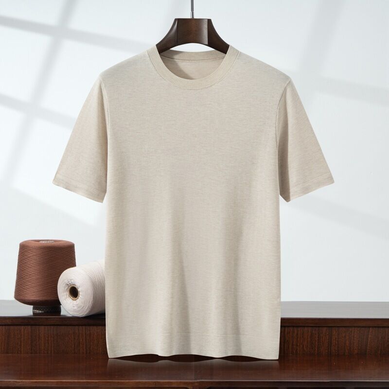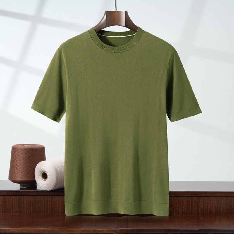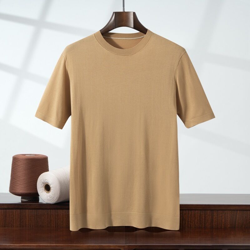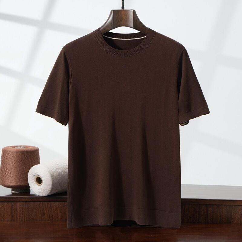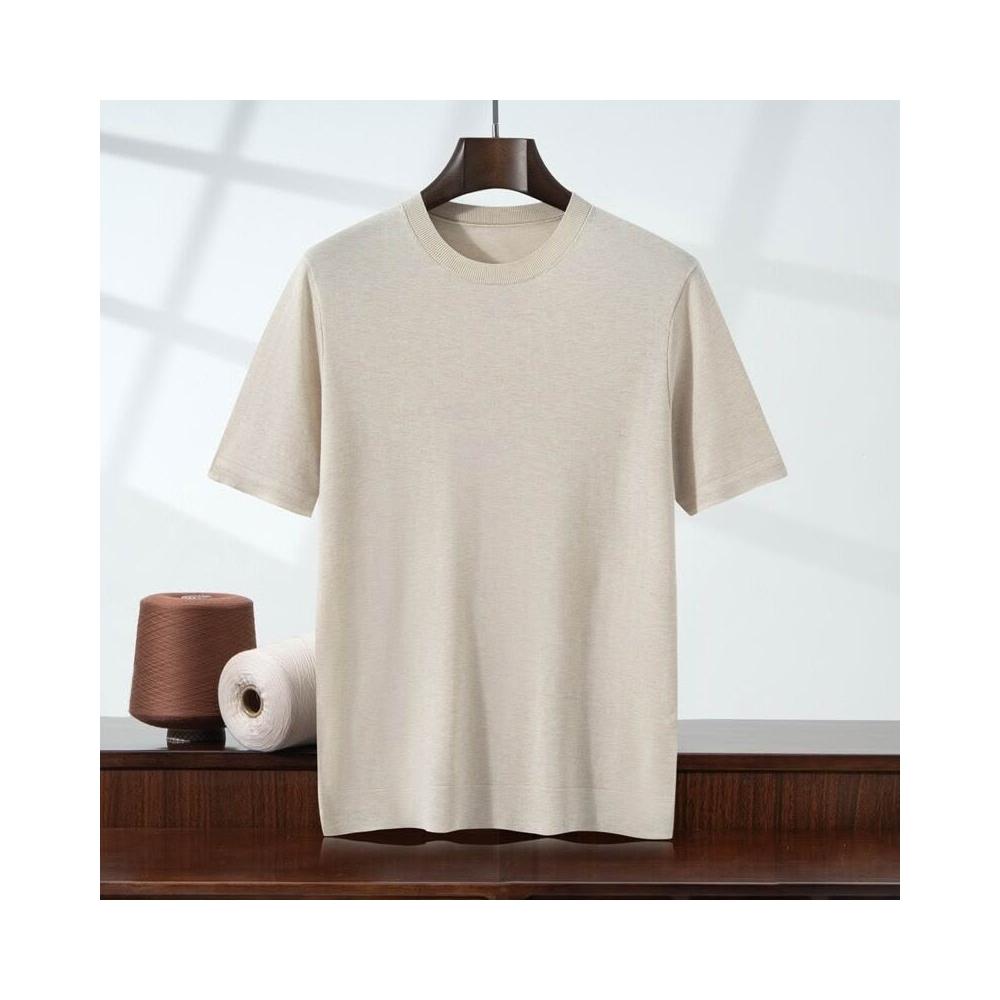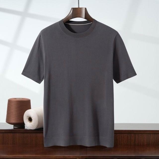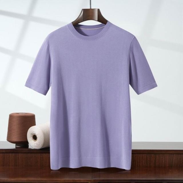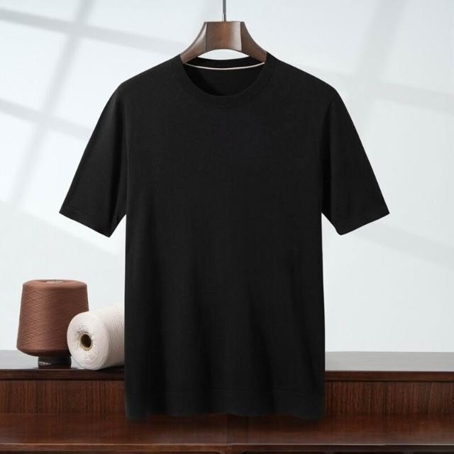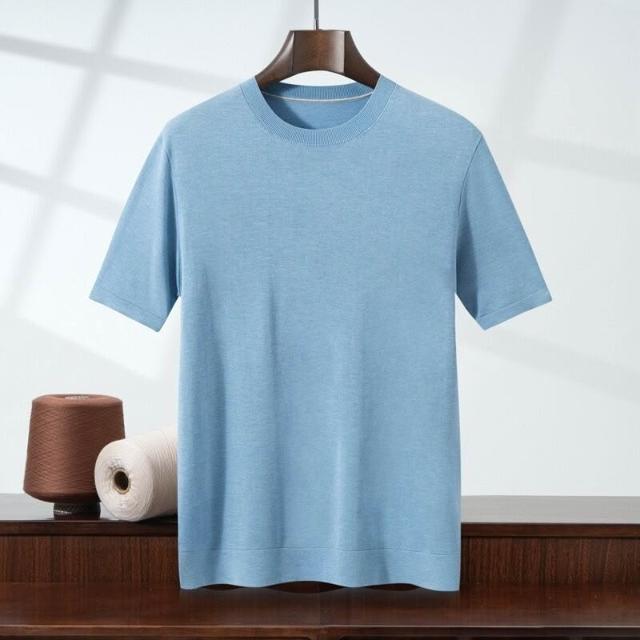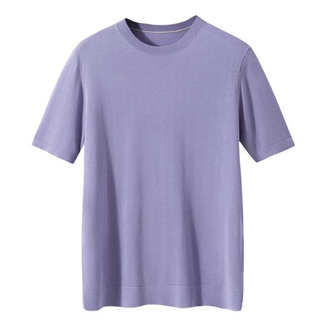 免運 夏季新款天絲萊賽爾圓領針織衫短袖T恤衫男士純色套頭打底衫批發