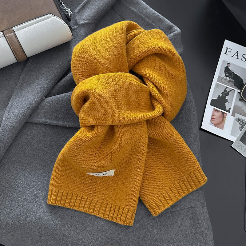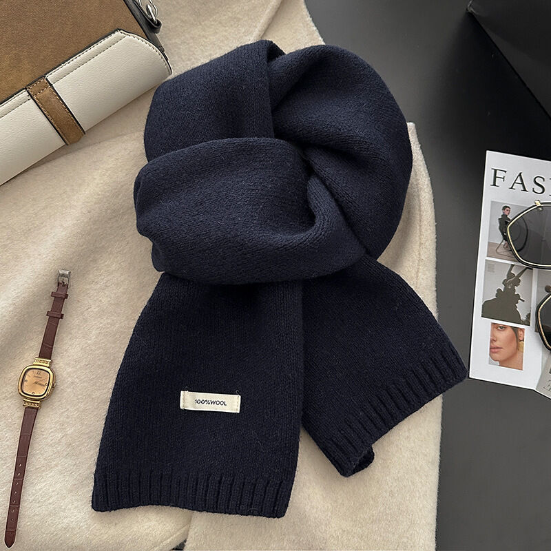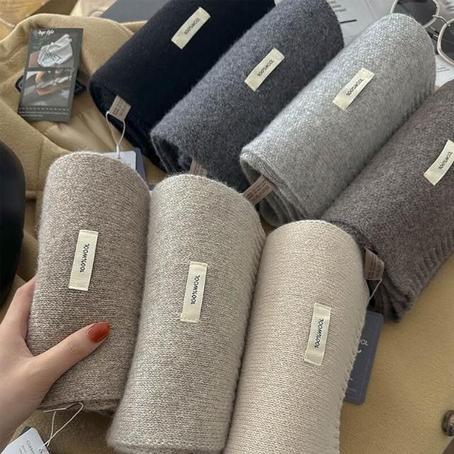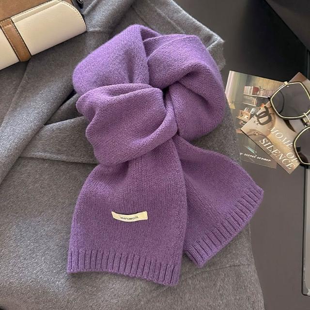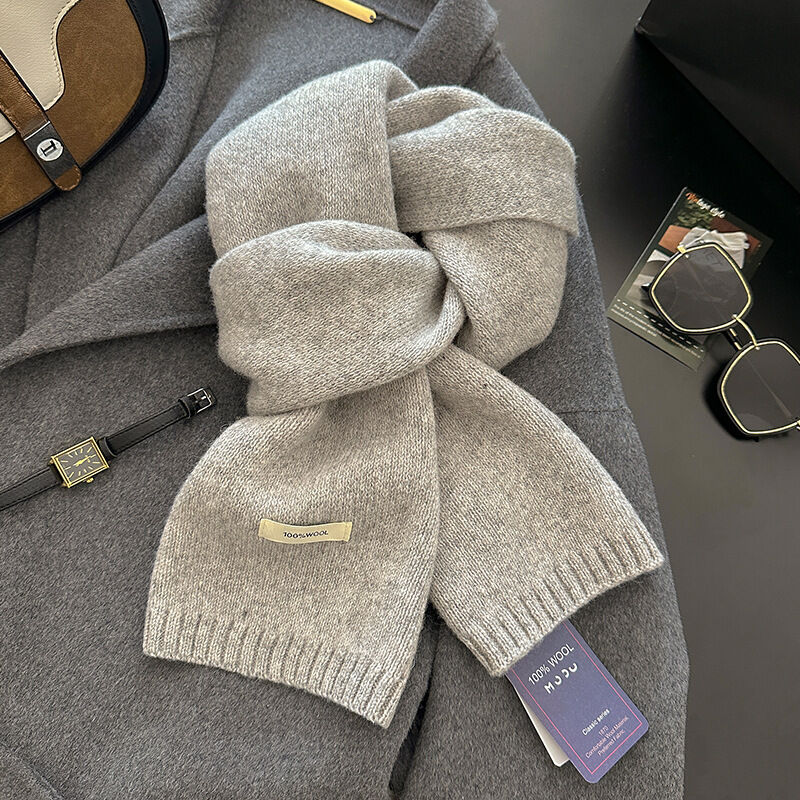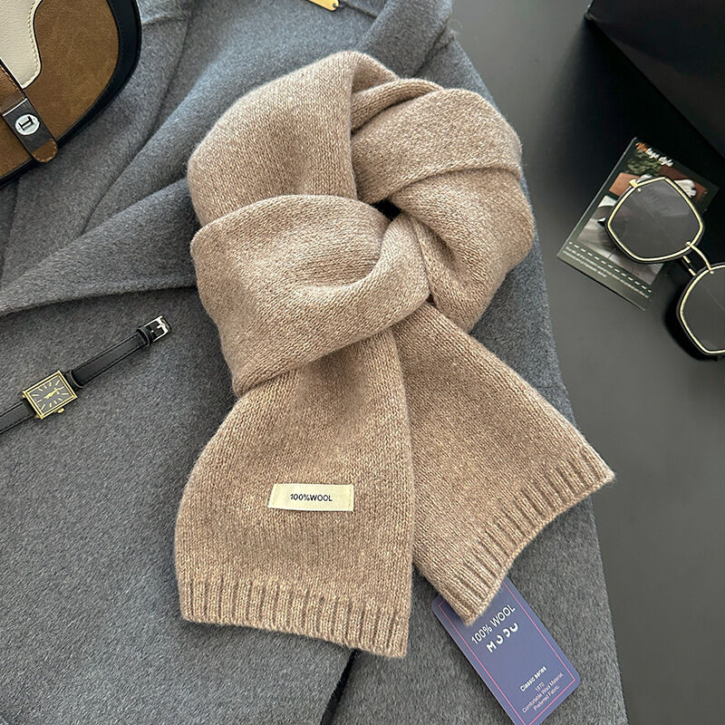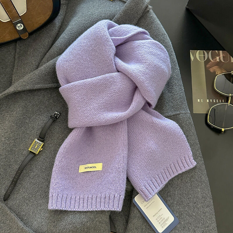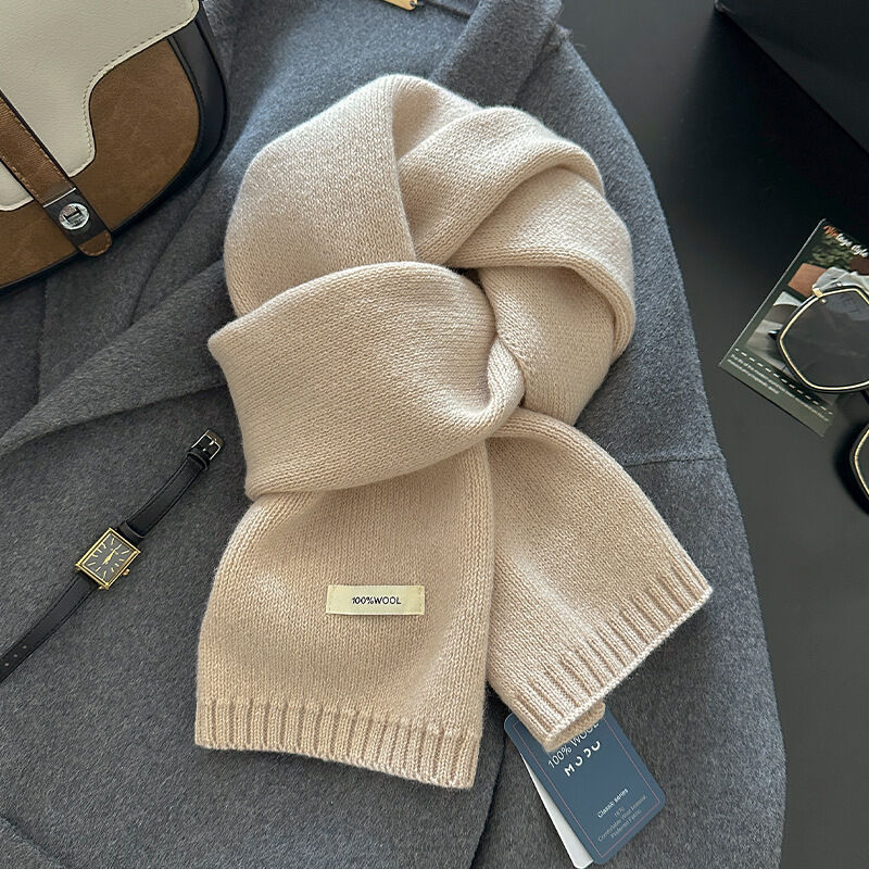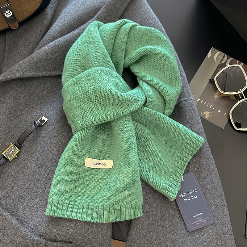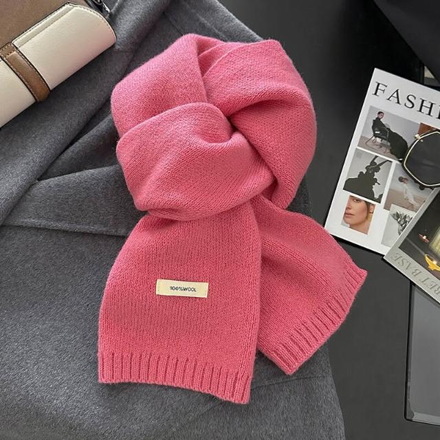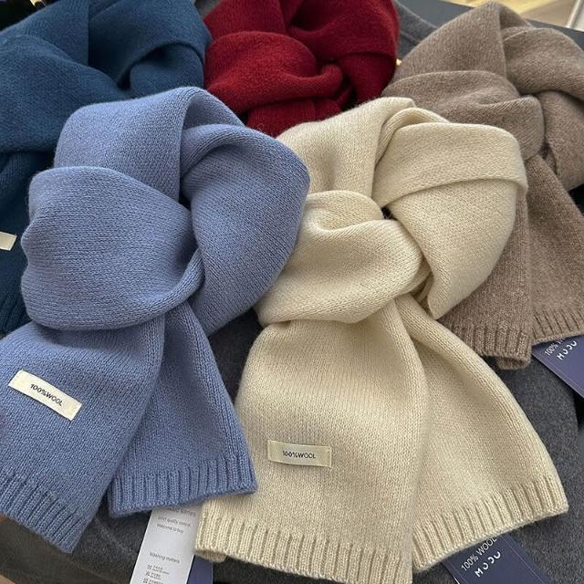 免運 新年紅色澳洲100%綿羊毛圍巾小巧純色針織圍巾女加厚保暖護頸圍脖