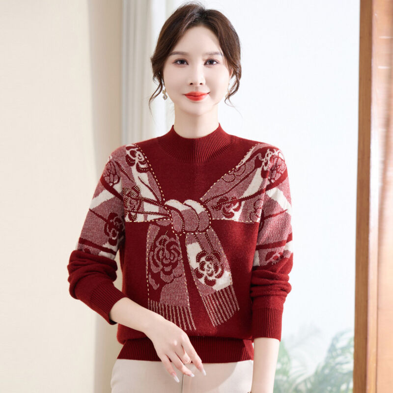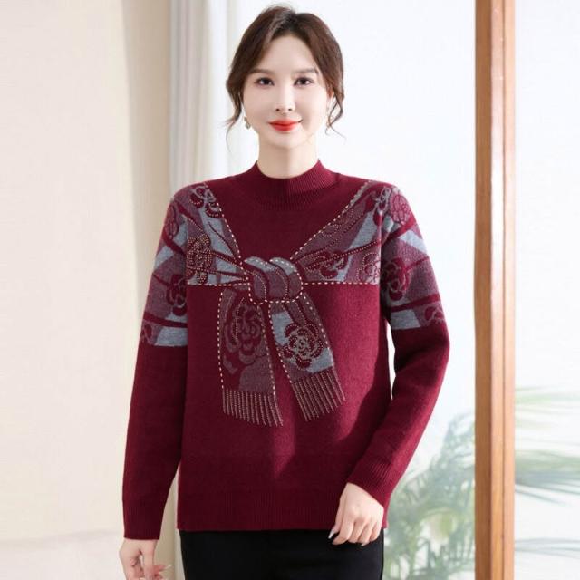 免運 冬裝洋氣毛衣時尚加絨針織打底衫中年保暖套頭毛衣