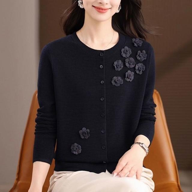 免運 毛衣小外套薄款秋季新款圓領長袖繡花外搭針織衫開衫百搭