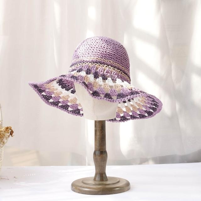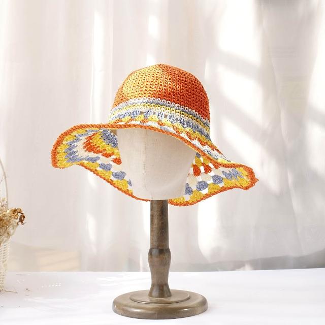 免運 草帽子女手工鉤針拼色彩虹大檐遮陽帽防曬小清新漁夫帽波西米亞風