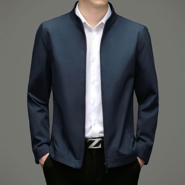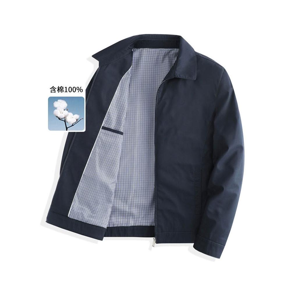 免運 100%棉男士春秋新款時尚翻領中年商務行政領導幹部夾克外套男