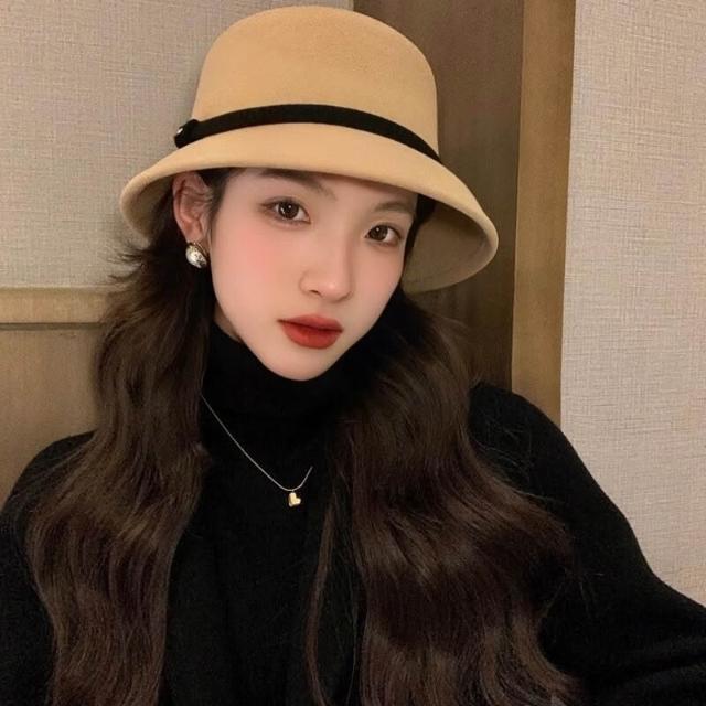 免運 法式優雅赫本風羊毛漁夫帽子女秋冬復古小香風禮帽顯臉小燈罩帽潮