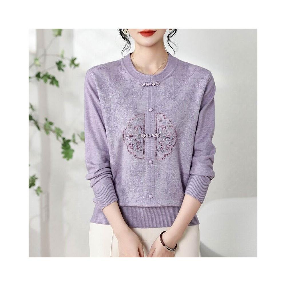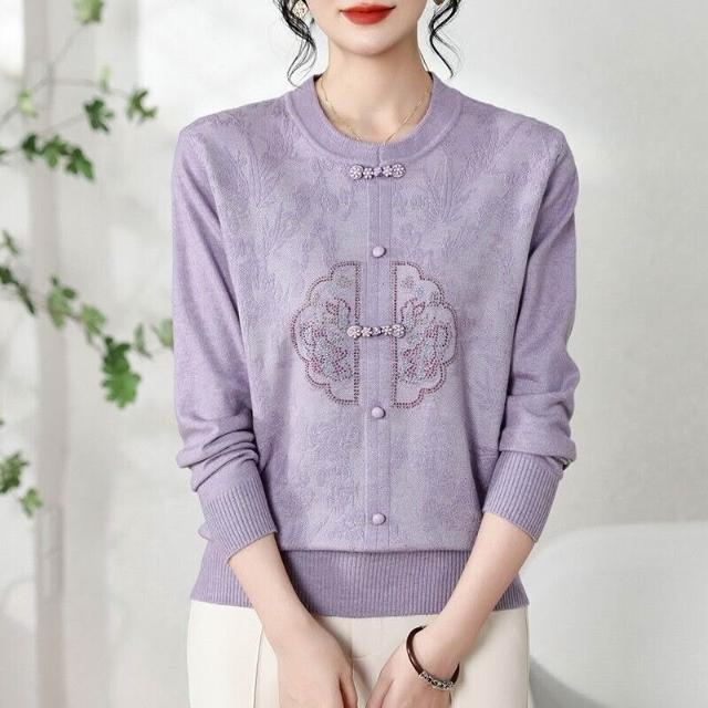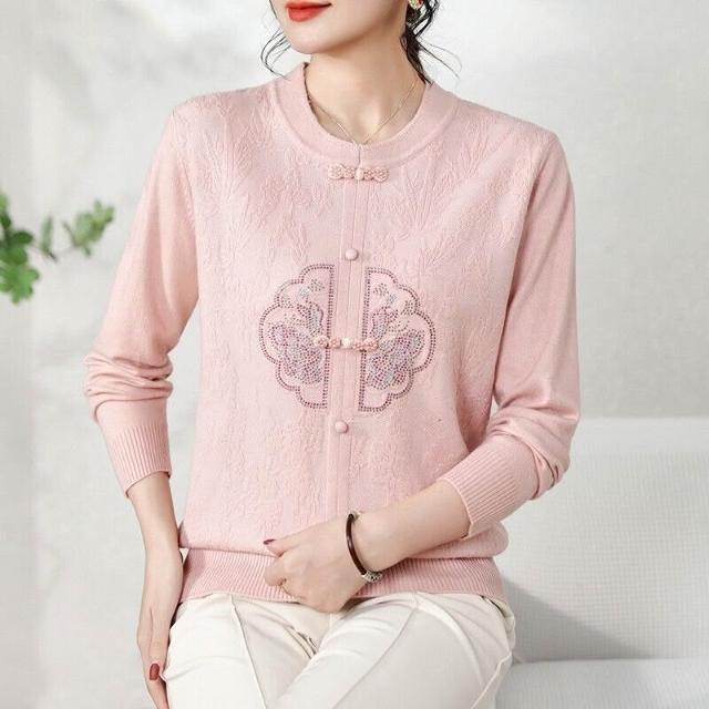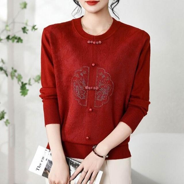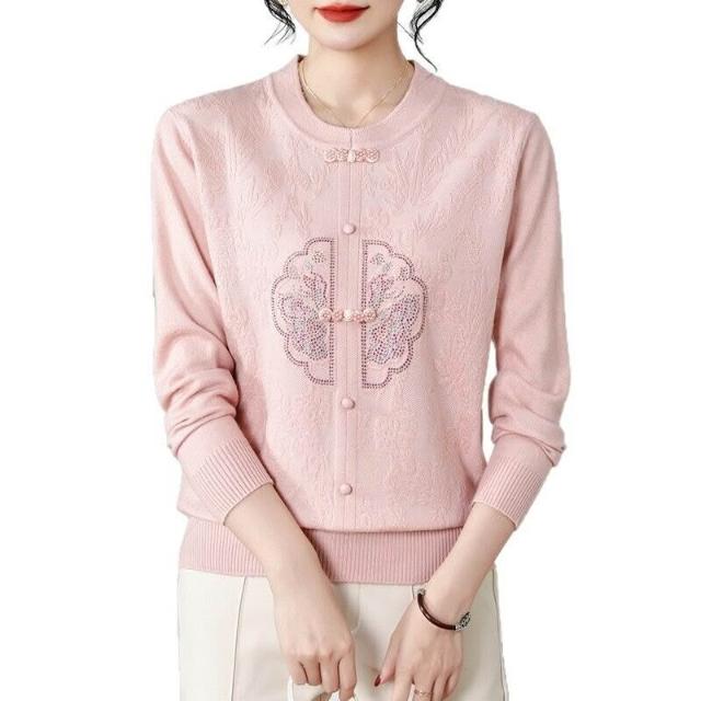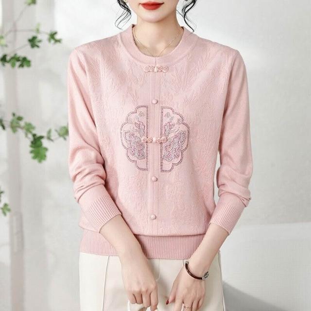 免運 2026秋冬裝新中式針織衫休閑寬松壓皺鑲鉆上衣毛衣女裝