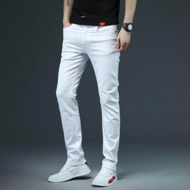 免運 高端春秋新款男士純白牛仔褲潮流韓版多色男士修身牛仔褲帥氣百搭