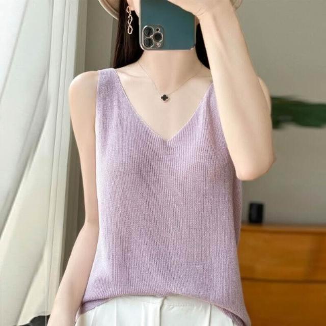 免運 冰絲吊帶背心女2024年夏季新款無袖純色上衣內搭寬松顯瘦洋氣打底