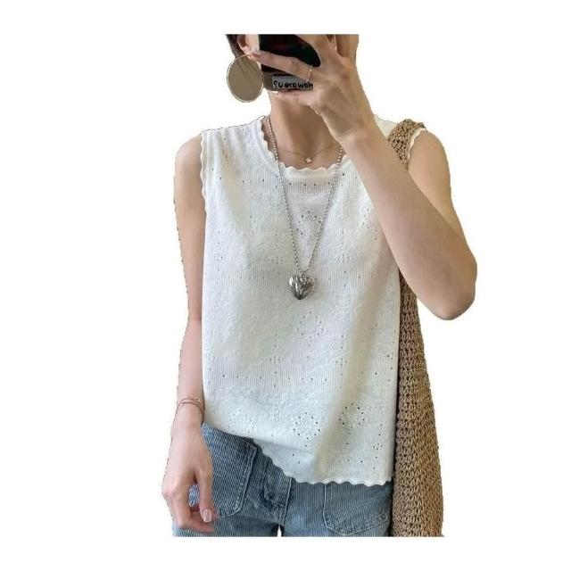 免運 夏季立體海浪花紋顯瘦無袖針織馬甲吊帶背心內搭镂空打底衫上衣女
