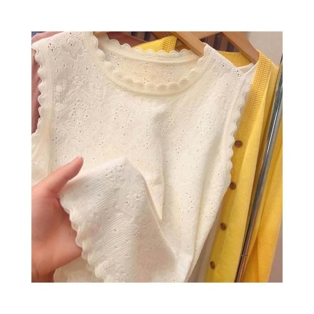 免運 夏季立體海浪花紋顯瘦無袖針織馬甲吊帶背心內搭镂空打底衫上衣女