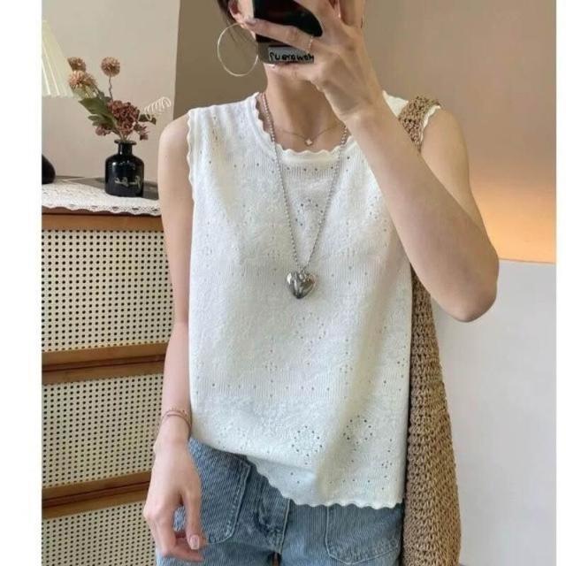 免運 夏季立體海浪花紋顯瘦無袖針織馬甲吊帶背心內搭镂空打底衫上衣女