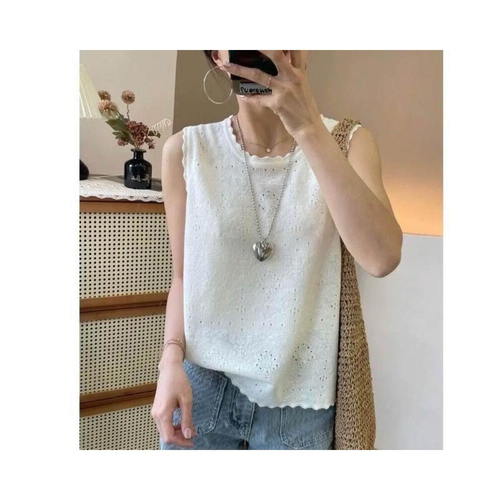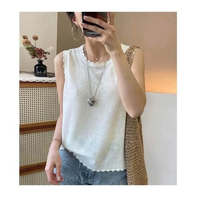 免運 夏季立體海浪花紋顯瘦無袖針織馬甲吊帶背心內搭镂空打底衫上衣女