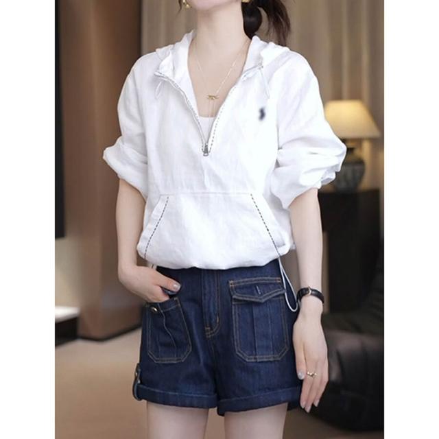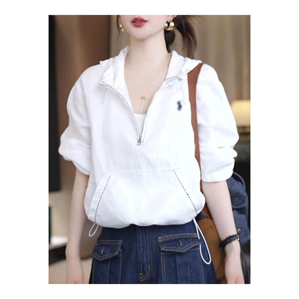 免運 百搭休閒寬鬆抽繩連帽上衣夏季新款半拉鏈衛衣長袖薄款防曬衣女