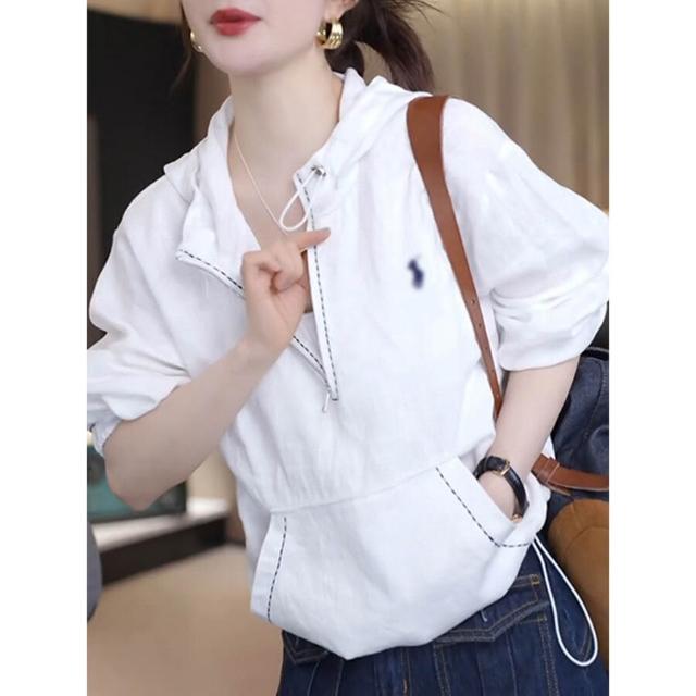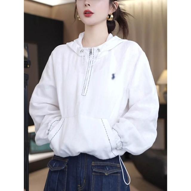 免運 百搭休閒寬鬆抽繩連帽上衣夏季新款半拉鏈衛衣長袖薄款防曬衣女