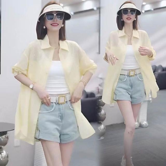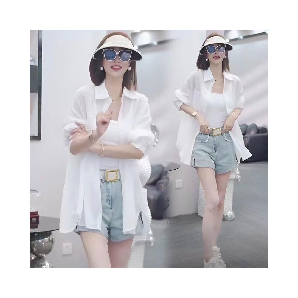 免運 夏季新款冰絲防曬襯衫女薄款寬鬆時尚燙鉆長袖防曬上衣