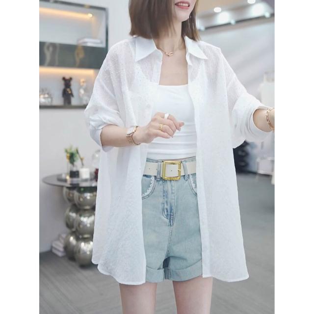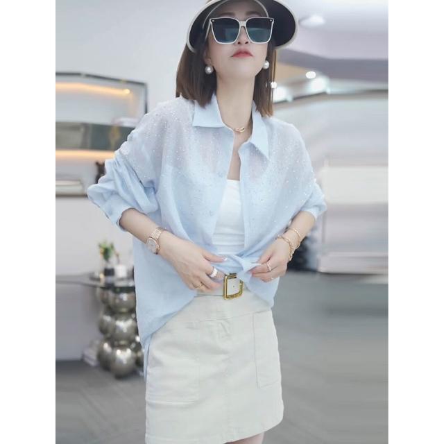 免運 夏季新款冰絲防曬襯衫女薄款寬鬆時尚燙鉆長袖防曬上衣