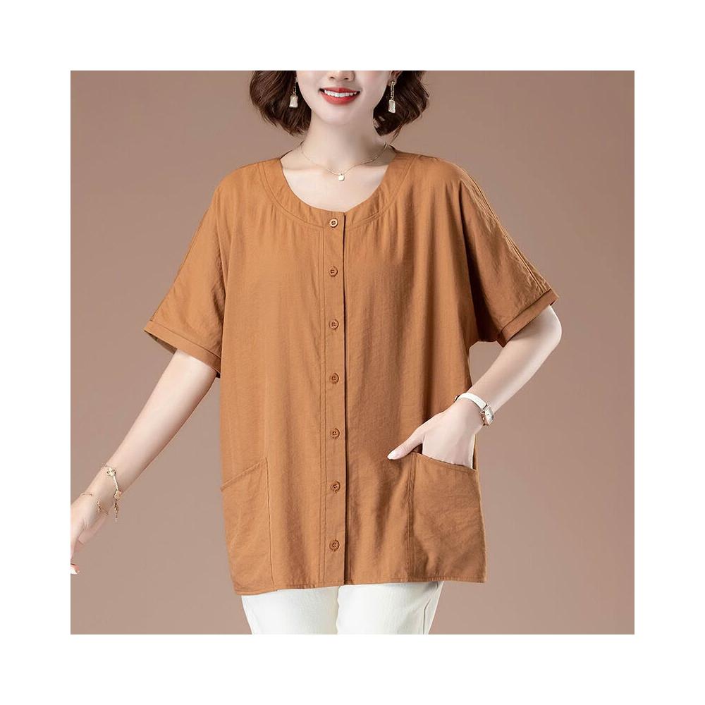 免運 中老年女士短袖雪紡襯衫上衣加肥加大碼T恤媽媽裝夏季蝙蝠袖襯衣