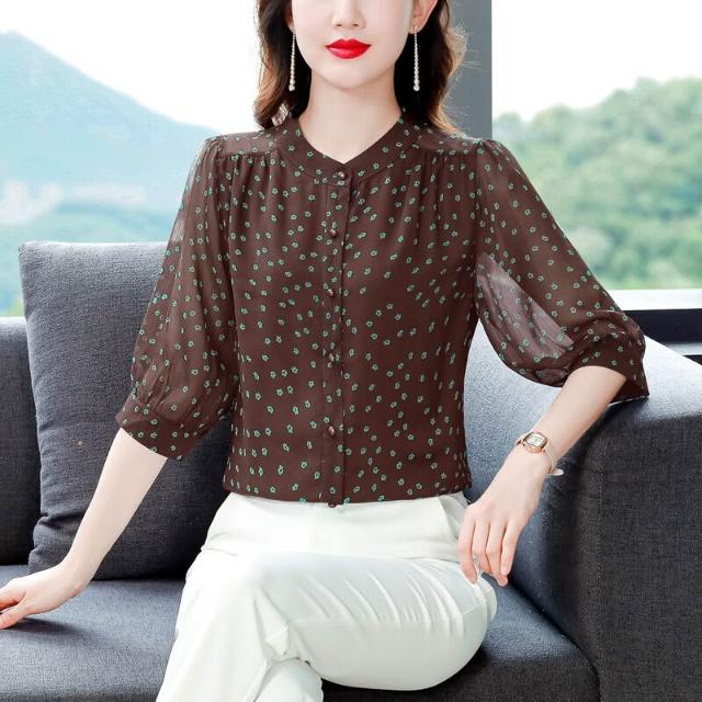 免運 真絲雪紡襯衫女2026新款春夏季時尚減齡小衫中年媽媽裝桑蠶絲上衣