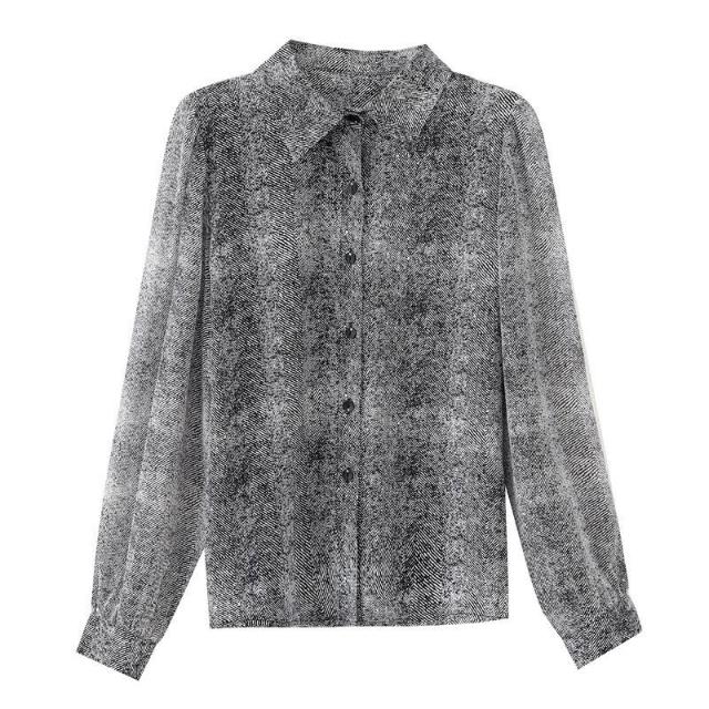 免運 高檔印花真絲雪紡襯衫中年上衣2026春秋新款女士長袖顯瘦襯衣