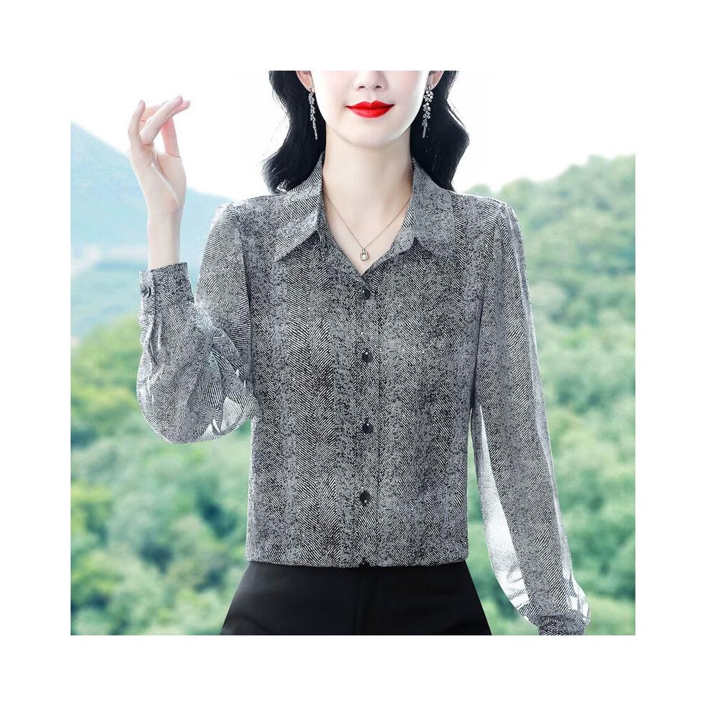 免運 高檔印花真絲雪紡襯衫中年上衣2026春秋新款女士長袖顯瘦襯衣