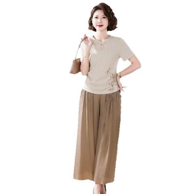 免運 時尚中年媽媽夏裝休閒套裝上衣褲子新中式夏季中老年女裝兩件套